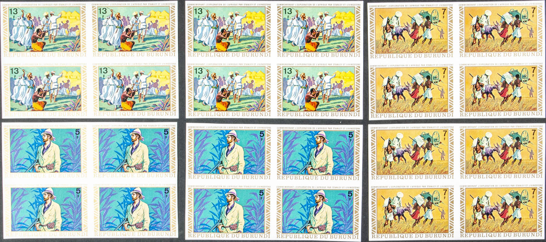 ★★Yvert 528/30 + A. 1973. Livingstone, Stanley. Group of complete IMPERFORATED set.