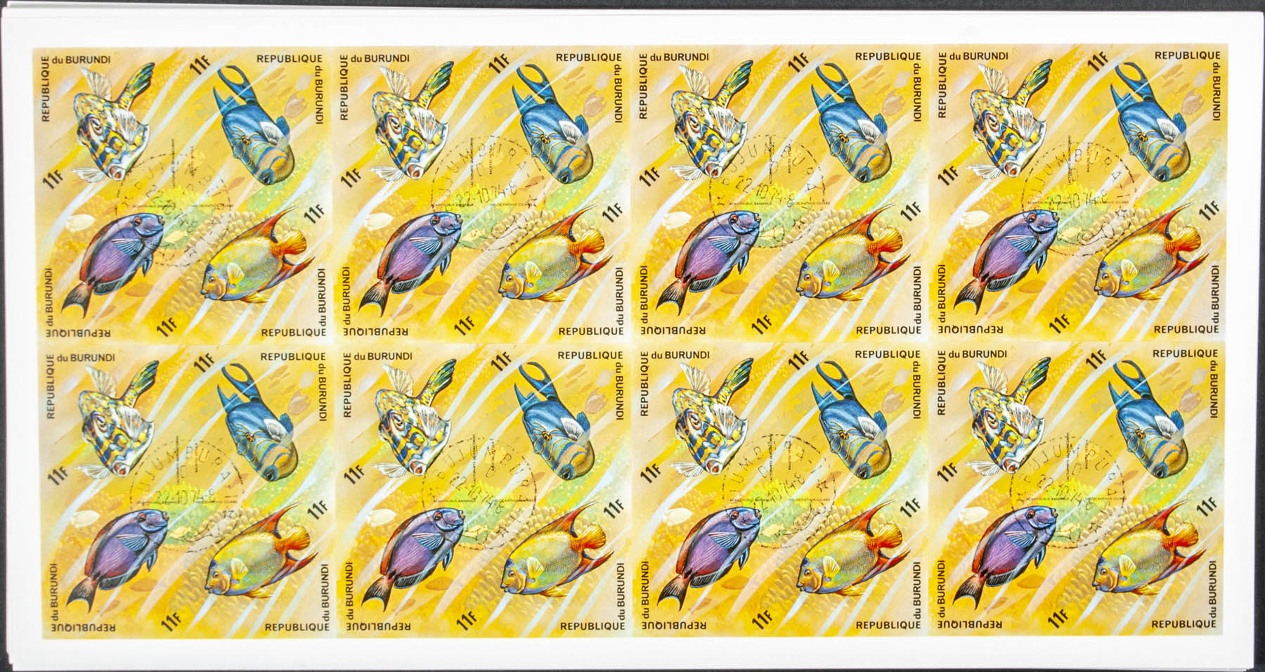 Yvert 588/11. 1974. Fishes. Group of complete IMPERFORATED set. Cancelled to order.
