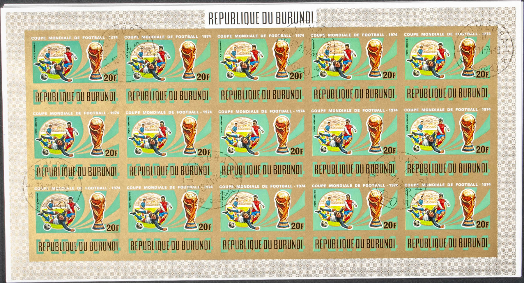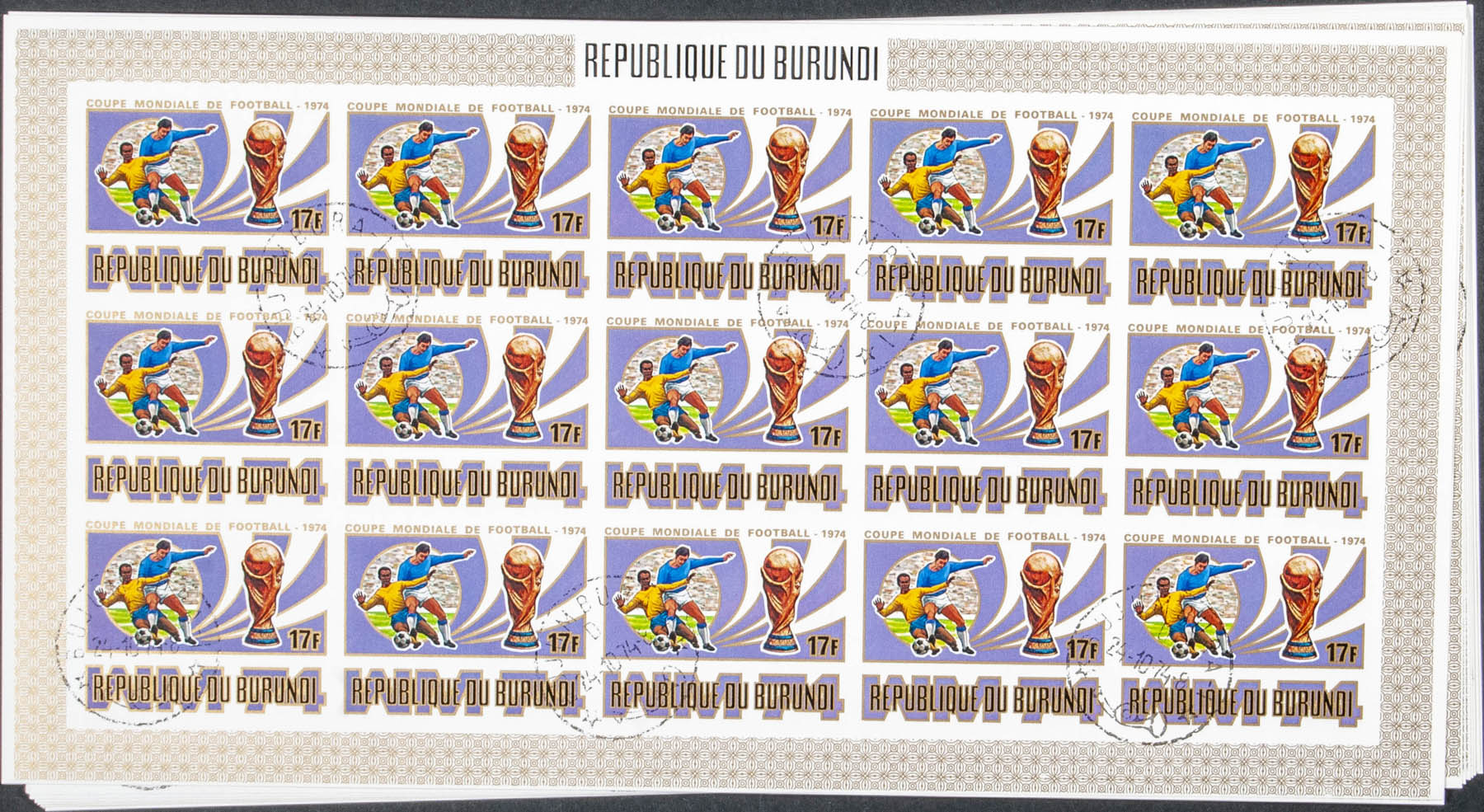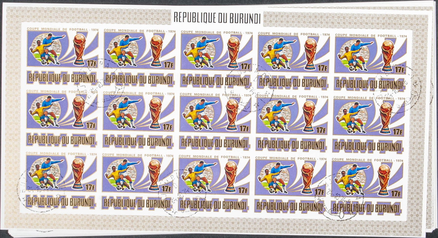 Yvert 612/16 + A. 1974. World Cup Football-1974. Group of complete IMPERFORATED set. Cancelled to order.