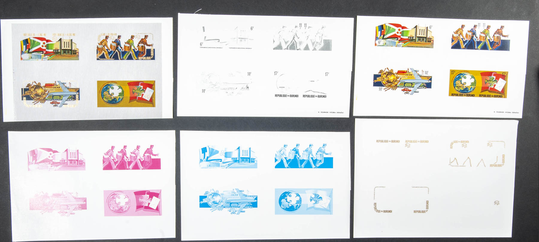 ★★Yvert B77. 1974. U.P.U. Centenaryá. Souvenir sheet. Progressive plate proof of the sheet.