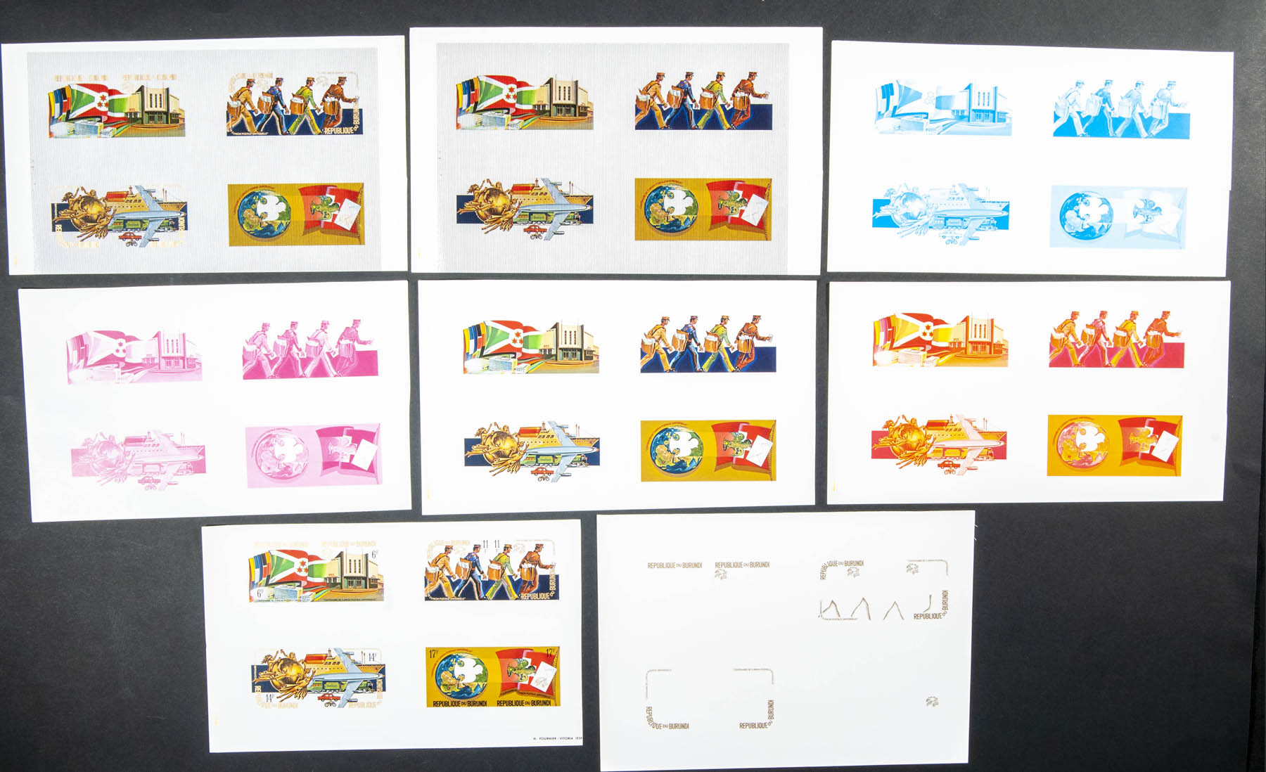 ★★Yvert B77/78. 1974. U.P.U. Centenary. Souvenir sheet. Progressive plate proof of the sheet.