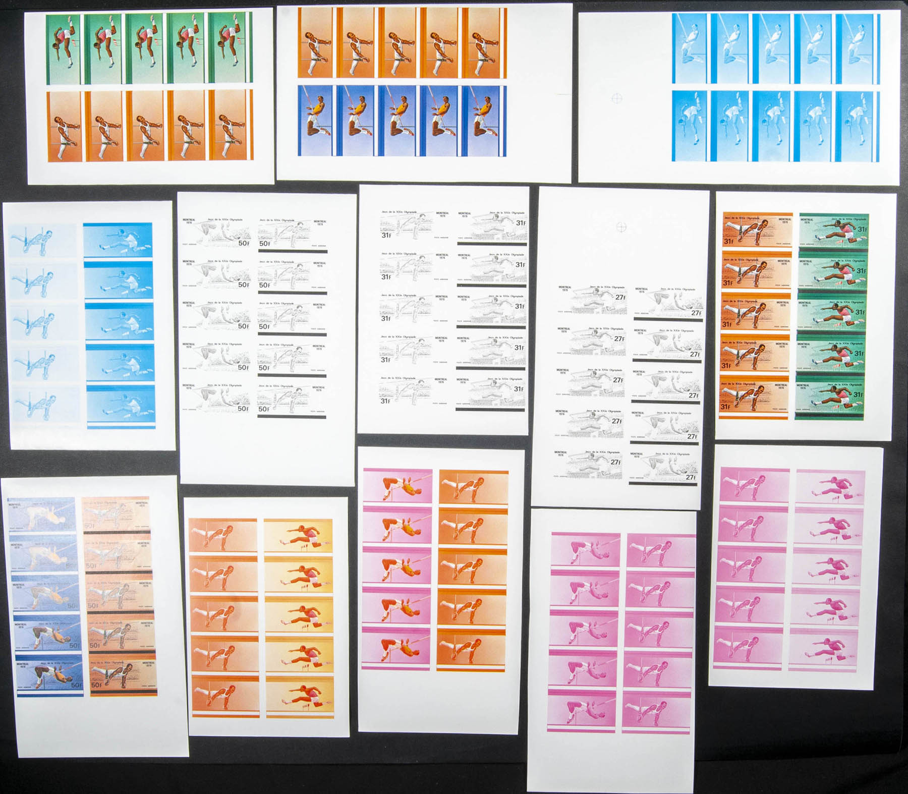 ★★Yvert A423/28. 1976. Olympic Games Montreal 76. Progressive plate proofs of the set.