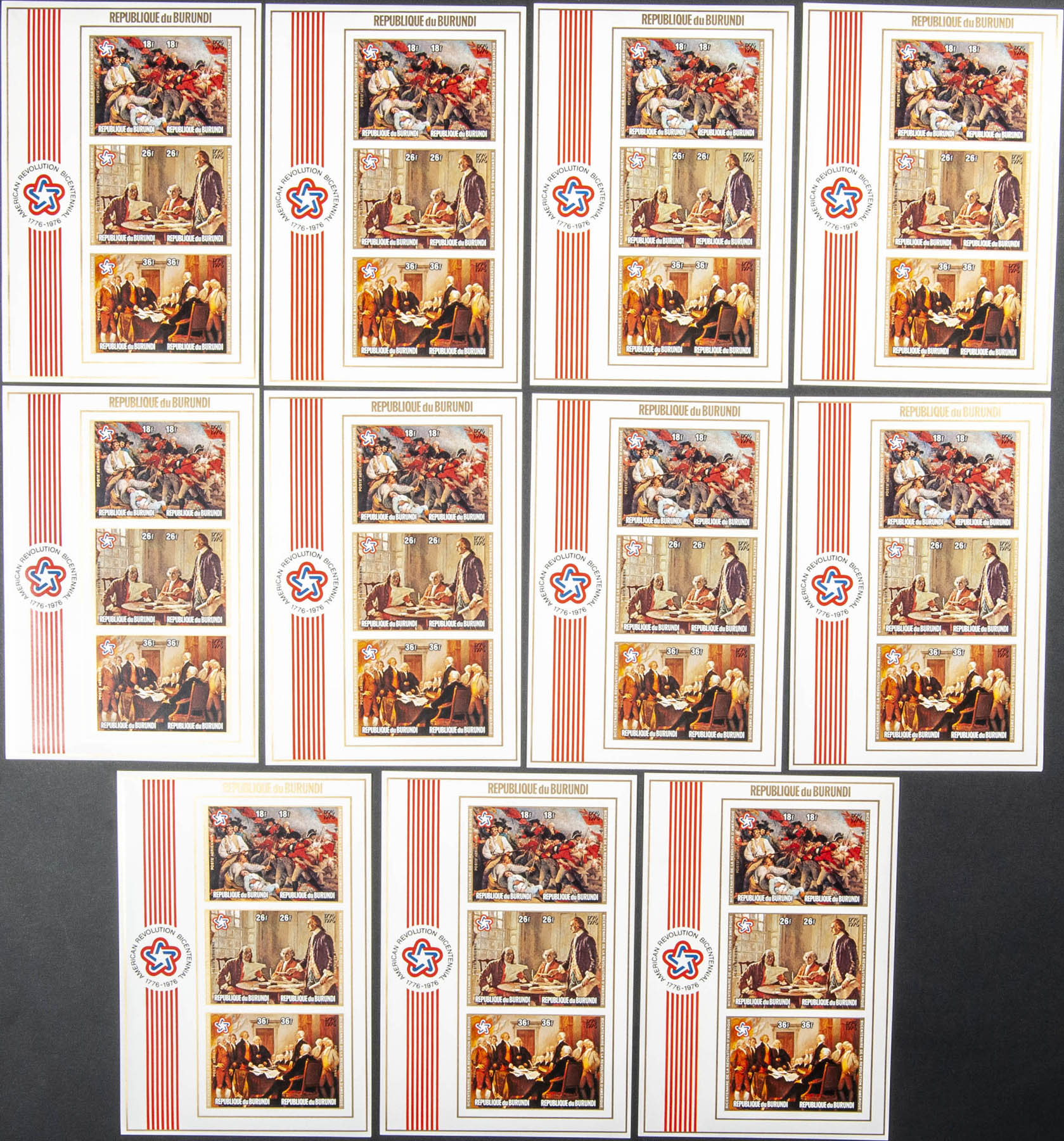 ★★Yvert B92. 1976. US Bicentenary. Souvenir sheet. Group of IMPERFORATED sheets.