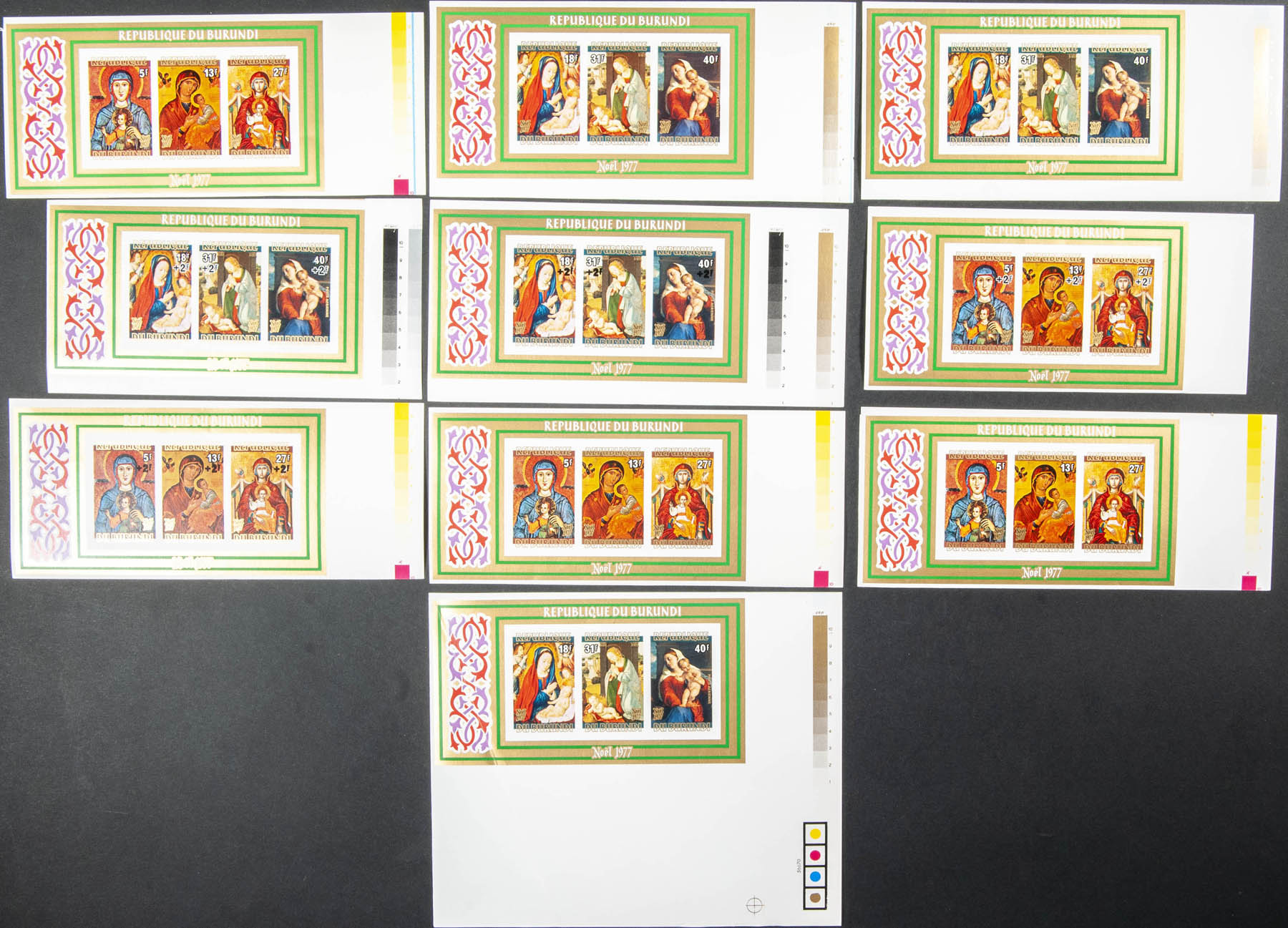 ★★Yvert B101/02. 1977. Christmas. Souvenir sheet. Group of IMPERFORATED sheets.