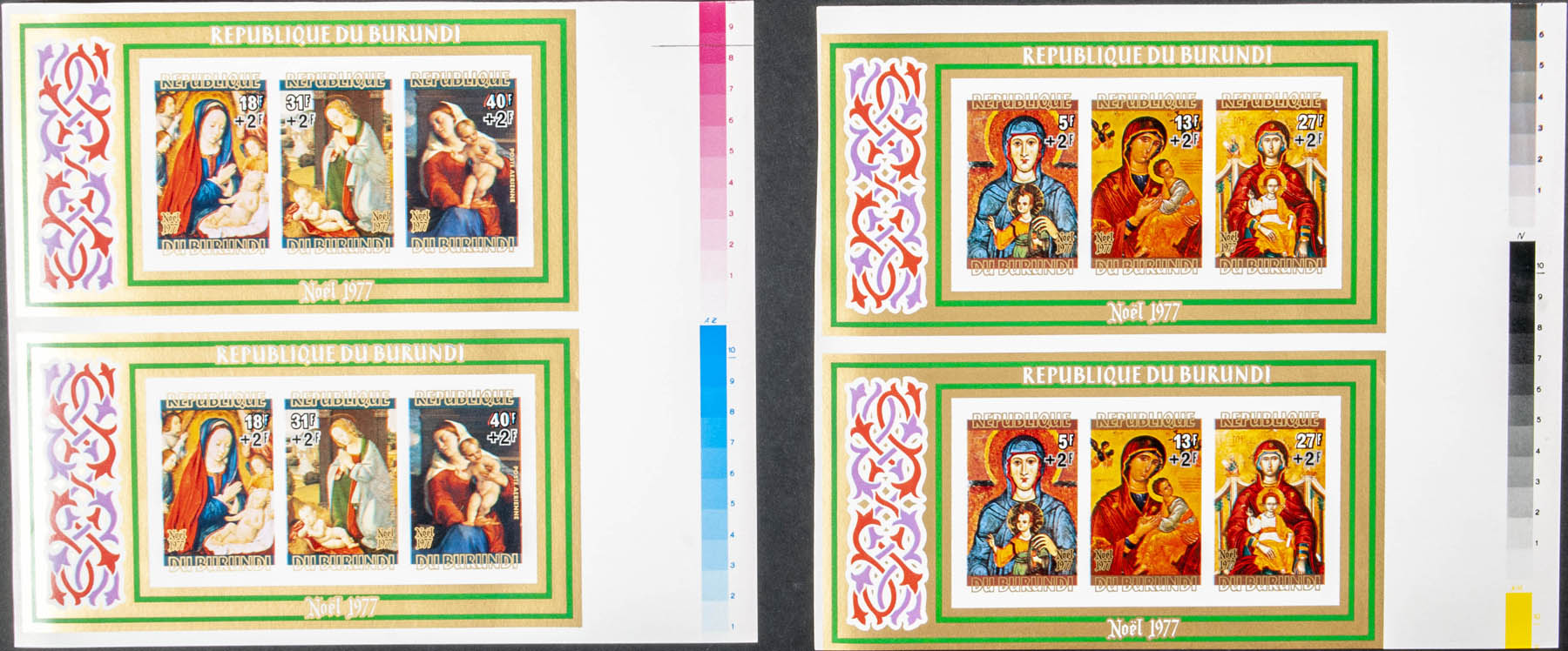 ★★Yvert B103/04. 1977. Christmas. Souvenir sheet. Group of IMPERFORATED sheets.