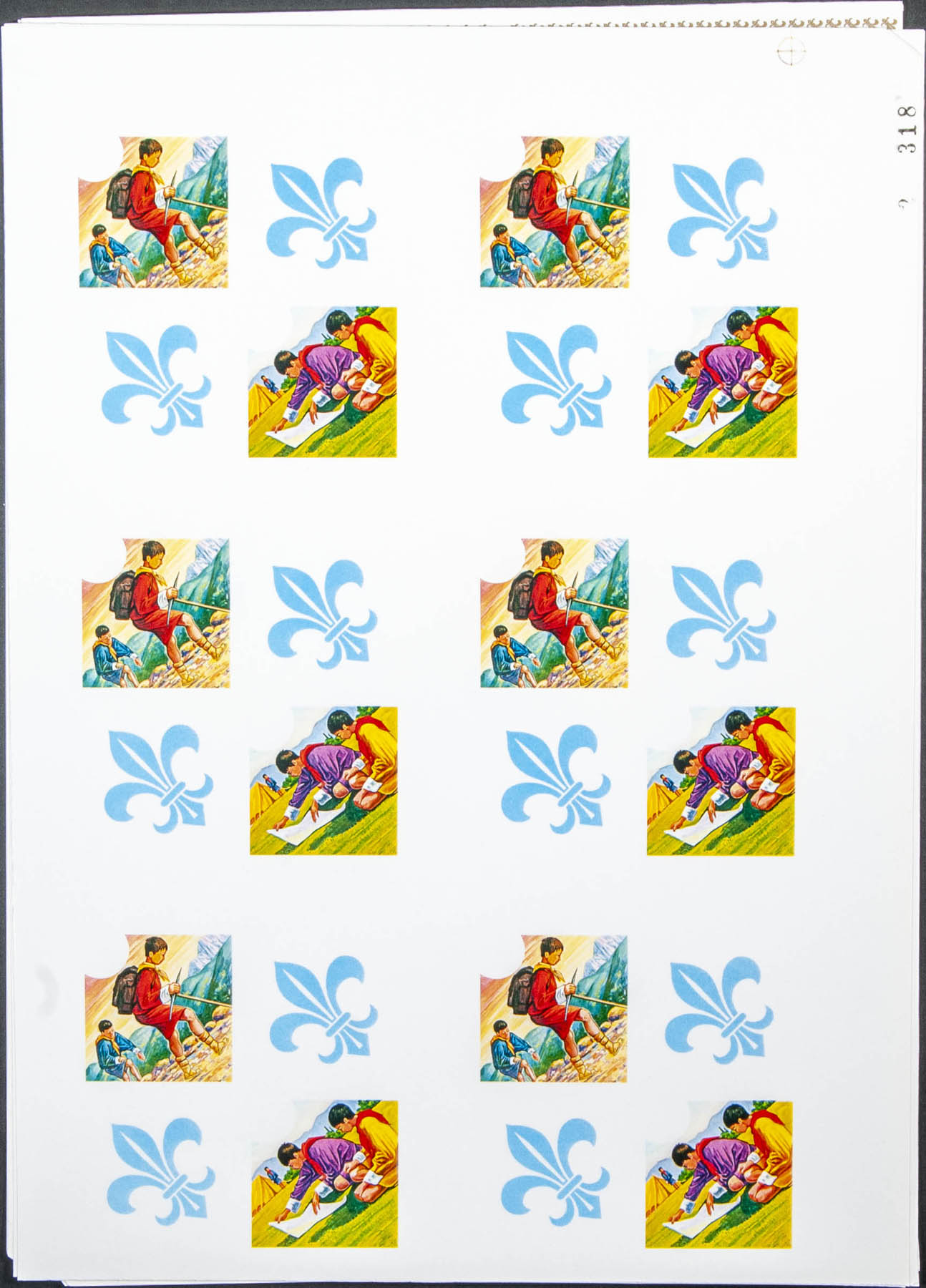 ★★Yvert B42. 1971. Scouting. Souvenir sheet. Group of progressive plate proof of the sheet.