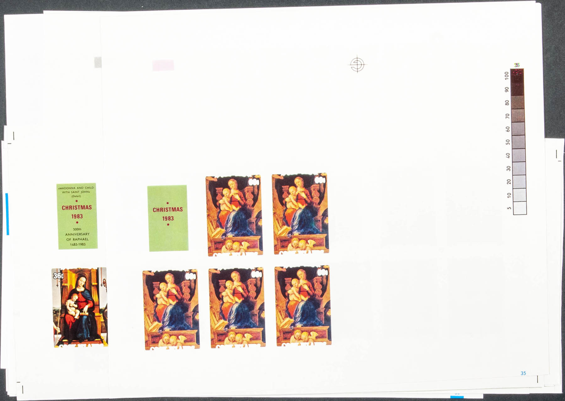 ★★Yvert 742/46. 1967. Christmas. Group of progressive plate proofs of the set.
