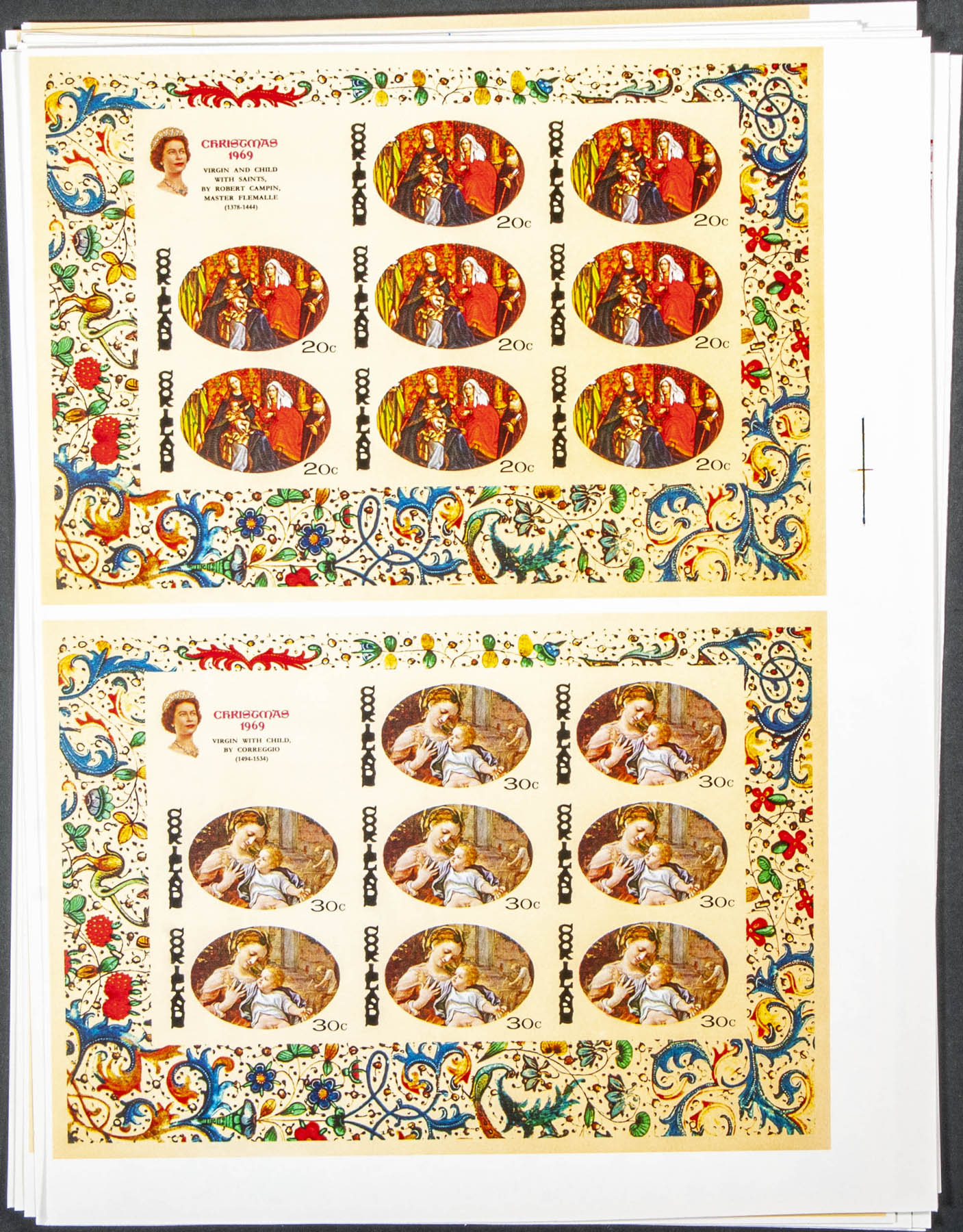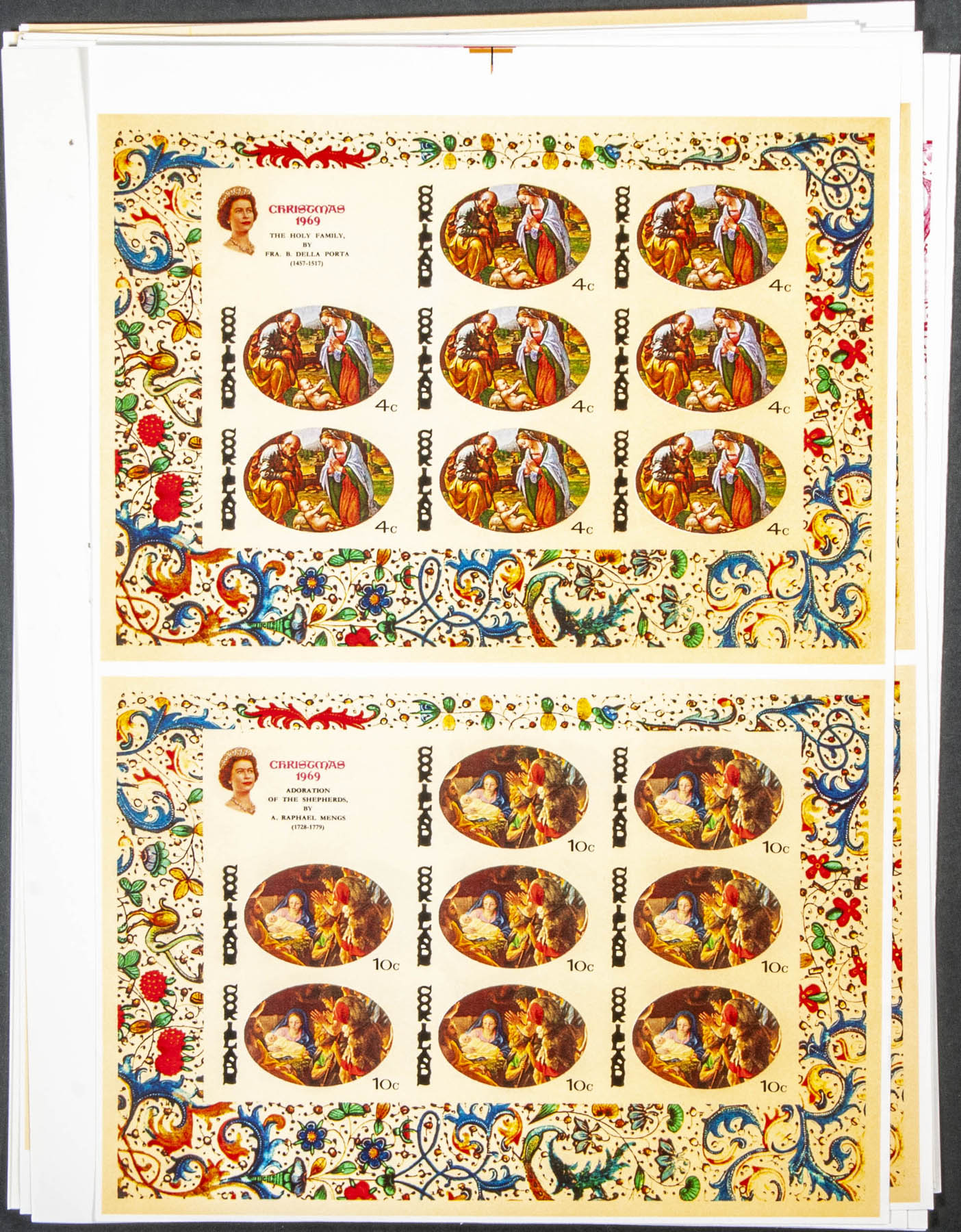 ★★Yvert 217/21. 1969. Christmas. Group of progressive plate proofs of the set.