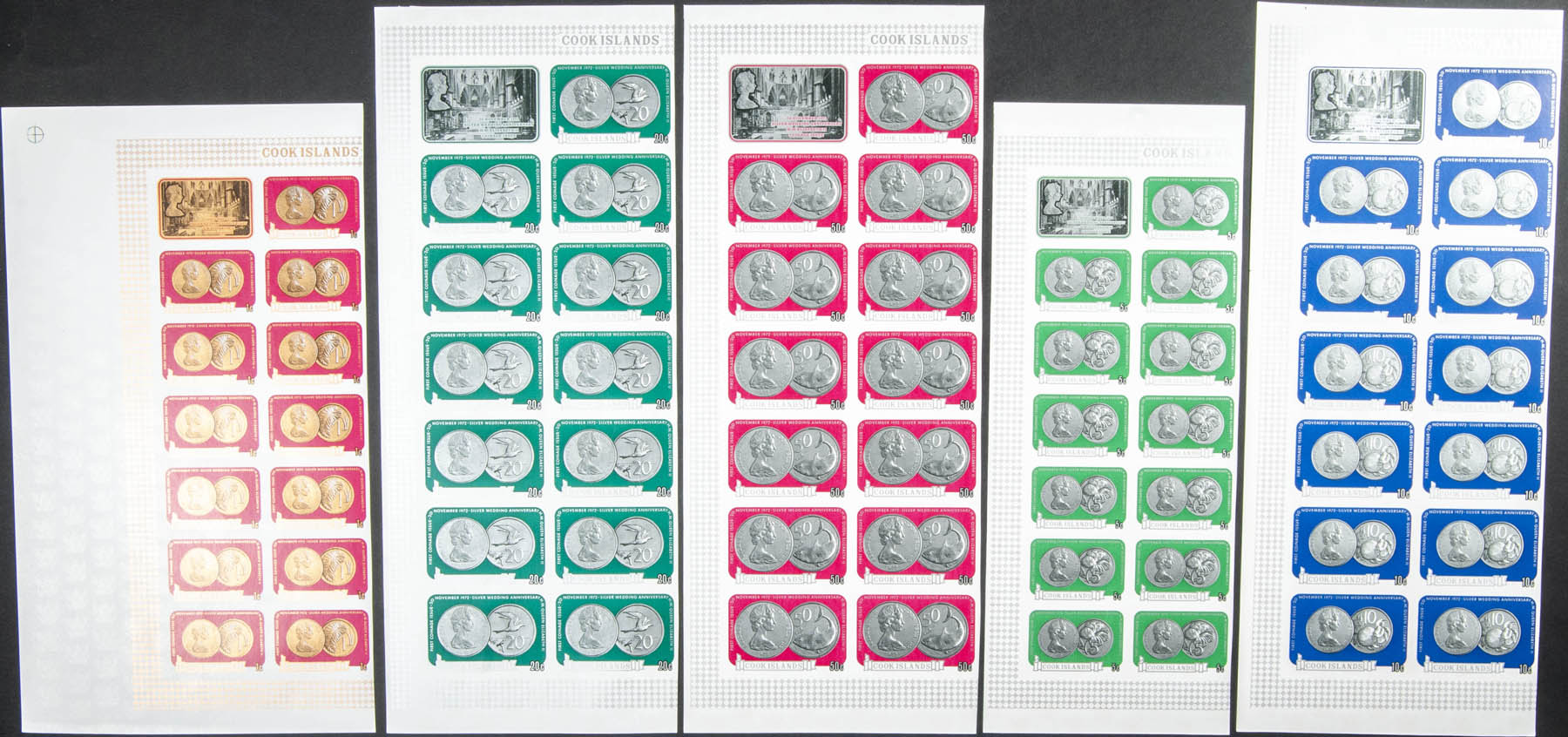 ★★Yvert 332/38. 1972. Coins. Group of complete IMPERFORATED set.