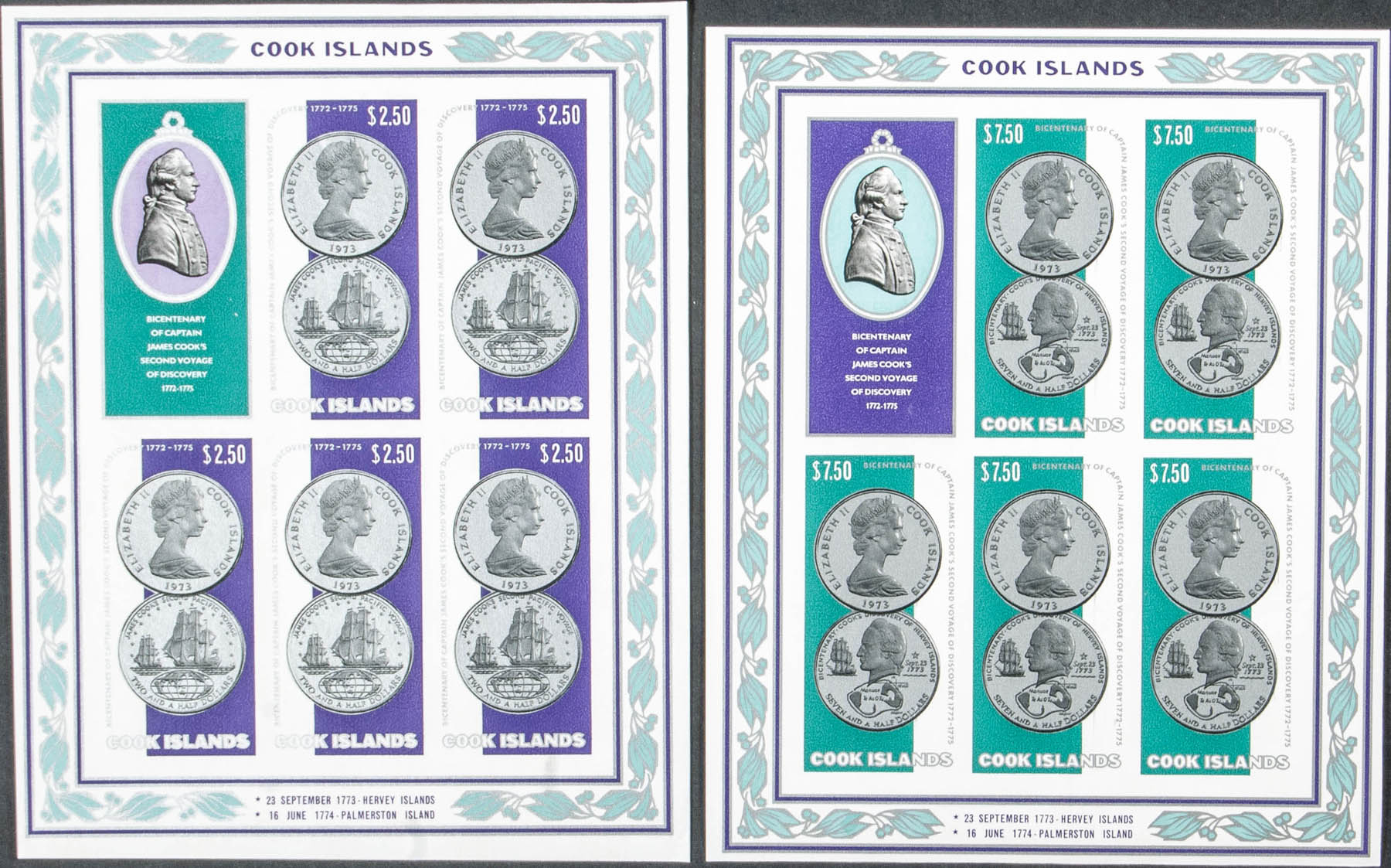 ★★Yvert 389/90. 1974. James Cook, coins. Group of complete IMPERFORATED set.
