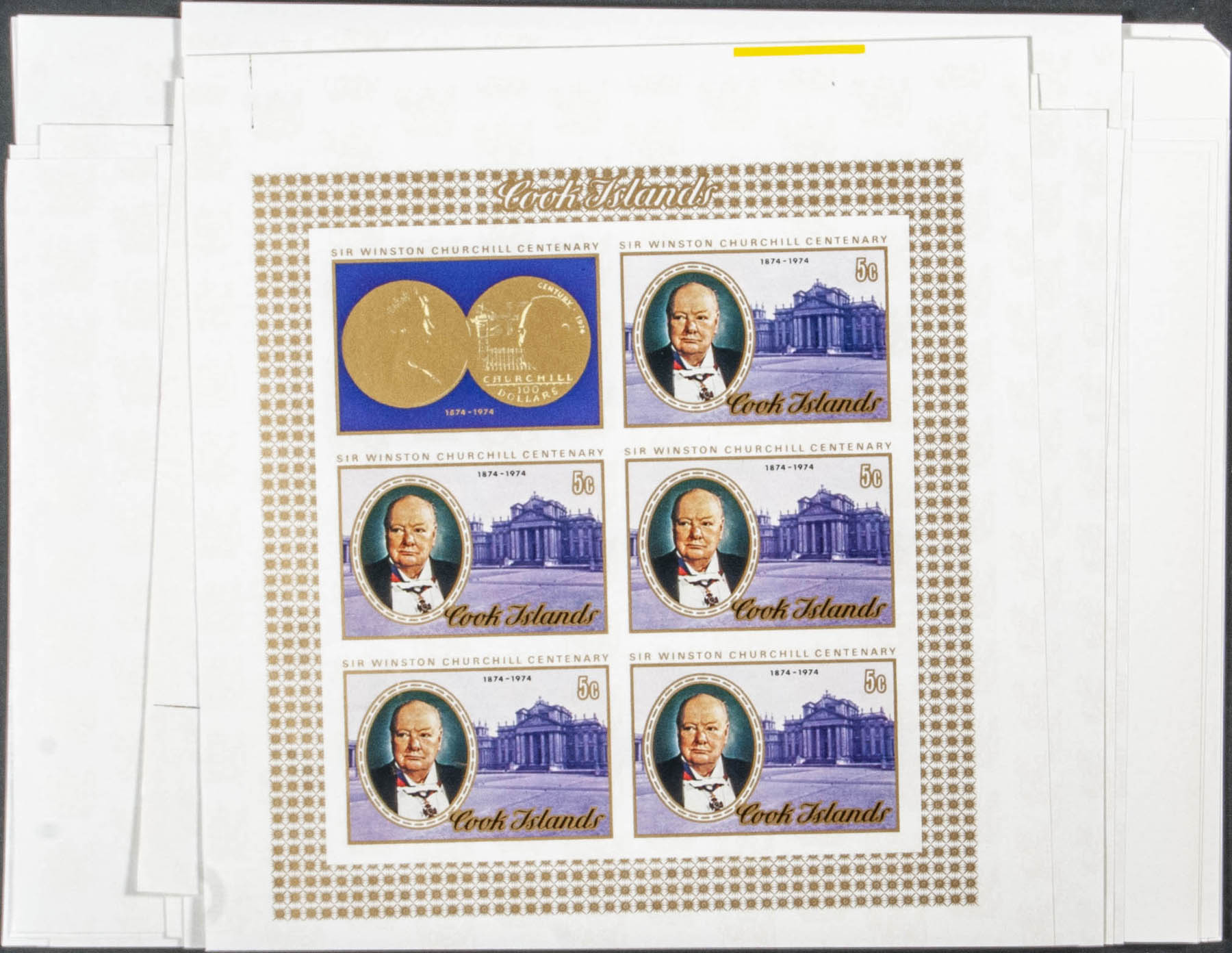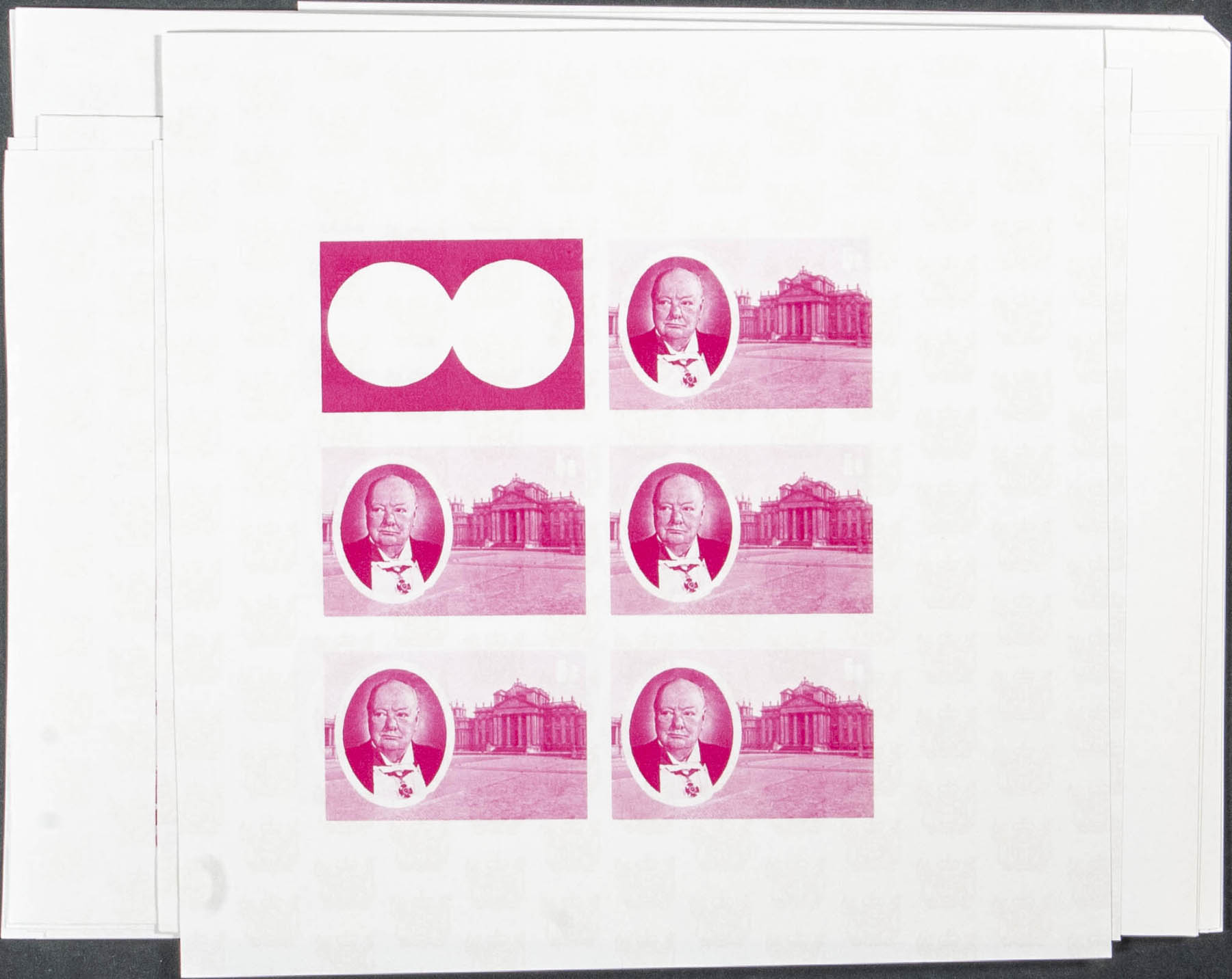 ★★Yvert 403/07. 1974. Sir Winston Churchill. Group of progressive plate proofs of the set.