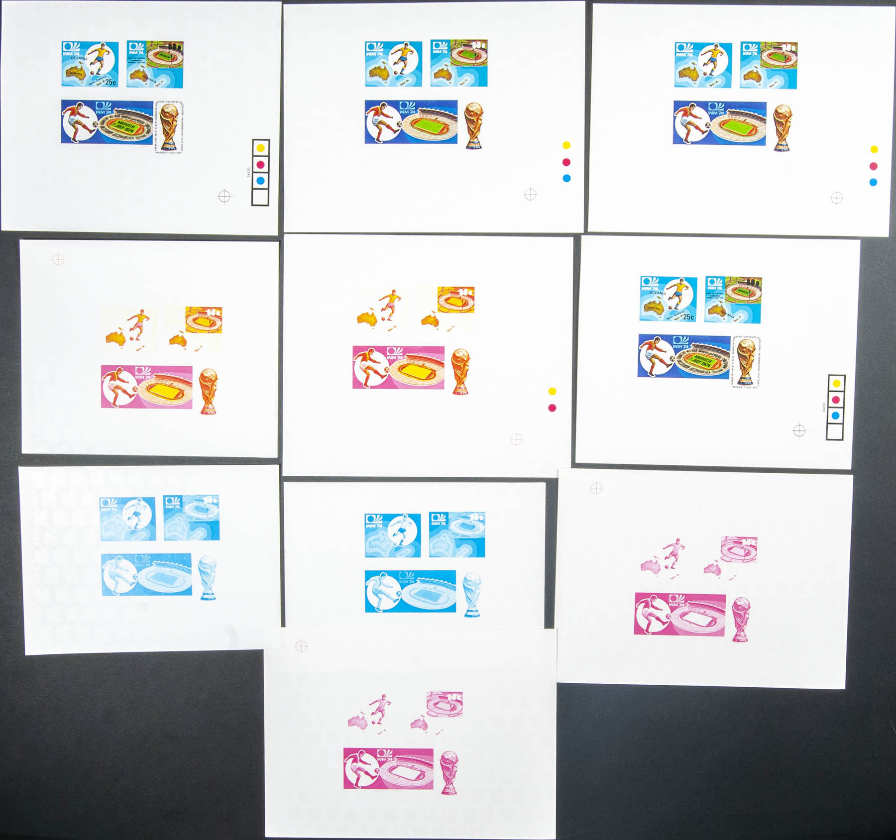 ★★Yvert B36. 1974. World Cup Football. Souvenir sheet. Group of progressive plate proof of the sheet.