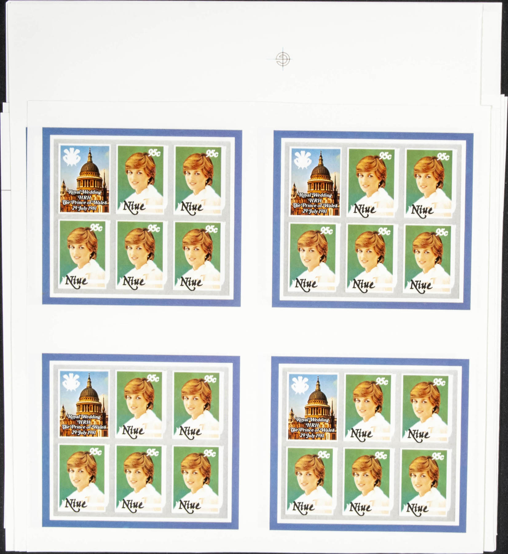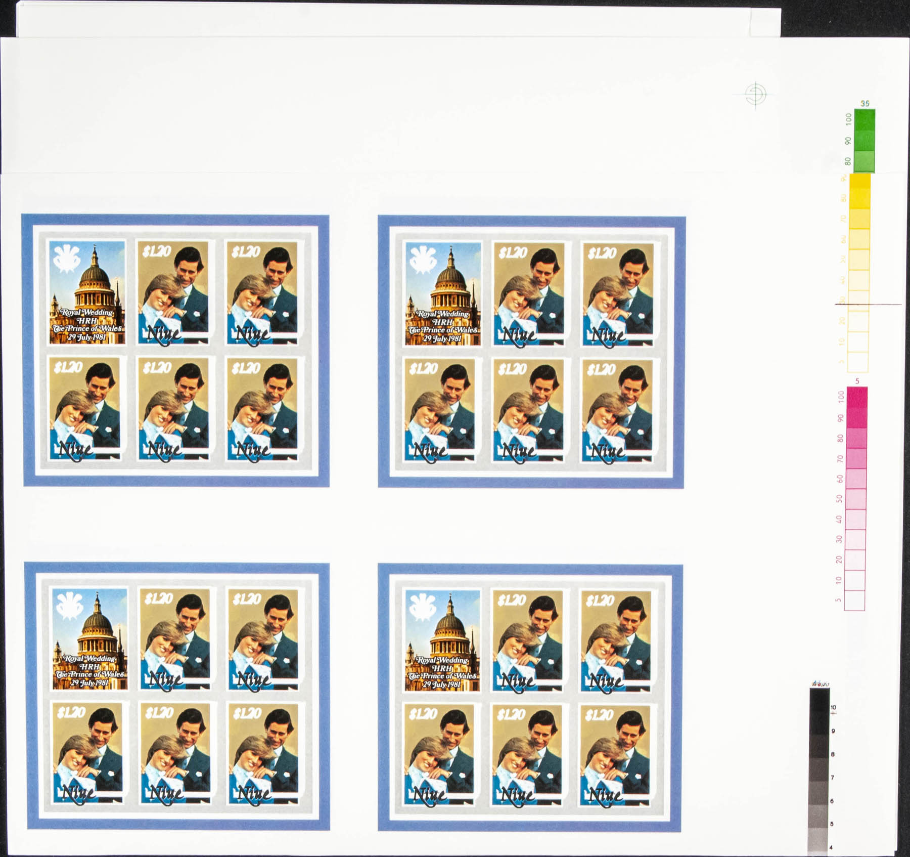 ★★Yvert 343/45. 1981. Charles and Diana wedding. Progressive plate proofs of the set.