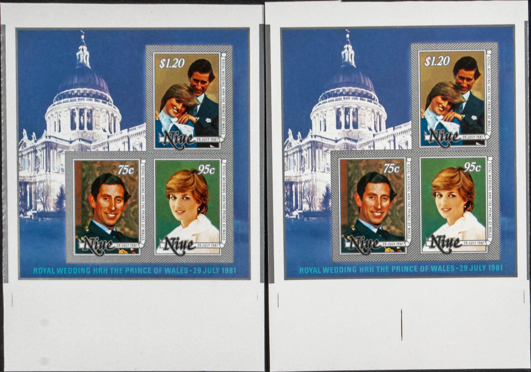 ★★Yvert B48. 1981. Charles and Diana wedding. Souvenir sheet. Group of IMPERFORATED sheets.