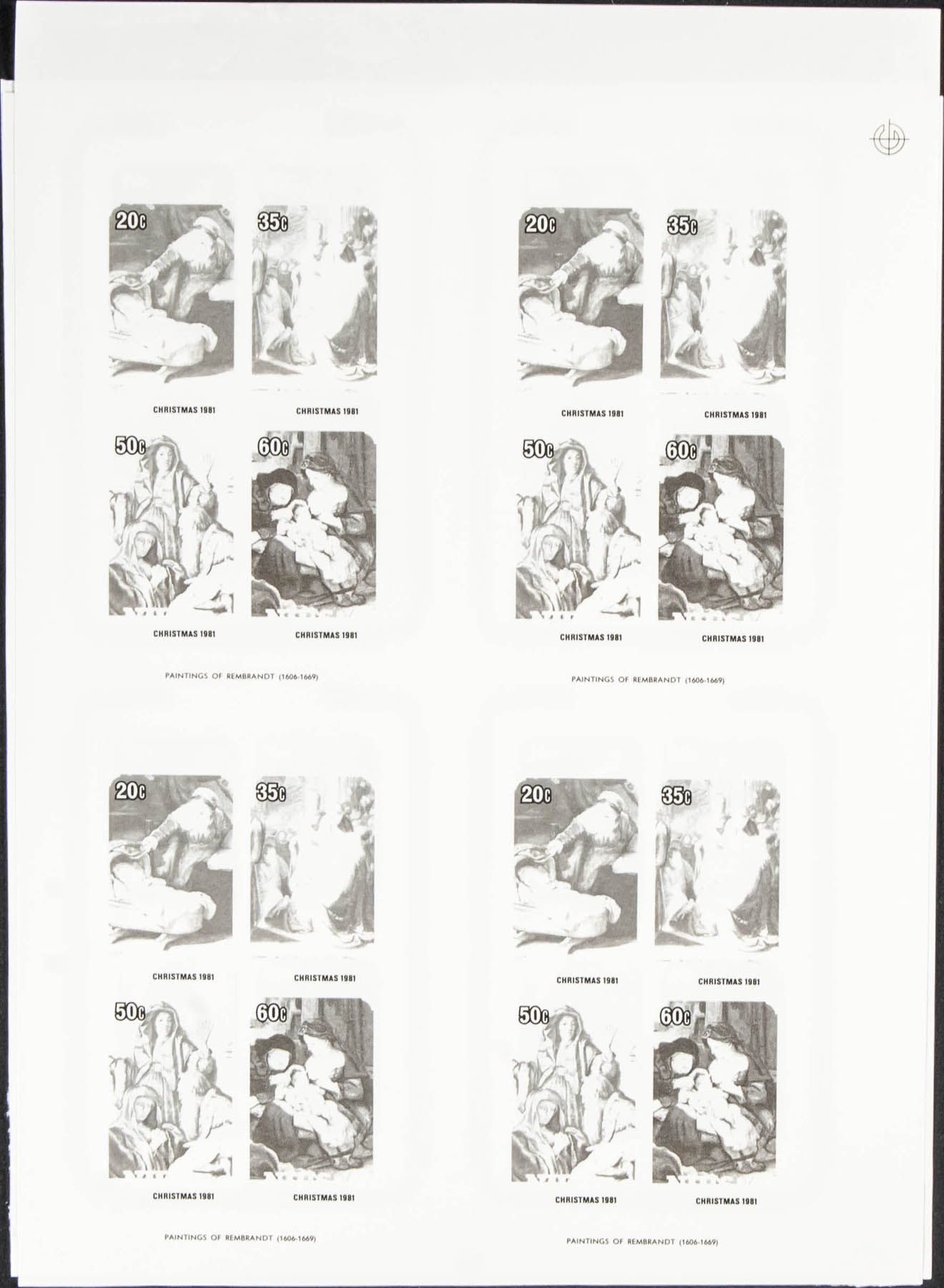 ★★Yvert B51. 1981. Christmas, Rembrandt. Souvenir sheet. Progressive plate proof of the sheet.