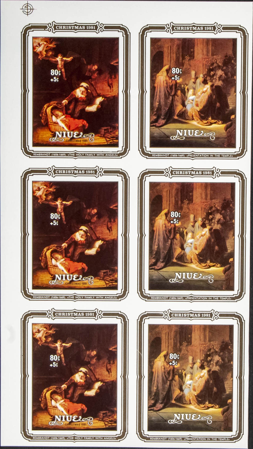 ★★Yvert B52/55. 1981. Christmas, Rembrandt. Souvenir sheet. Group of IMPERFORATED sheets.
