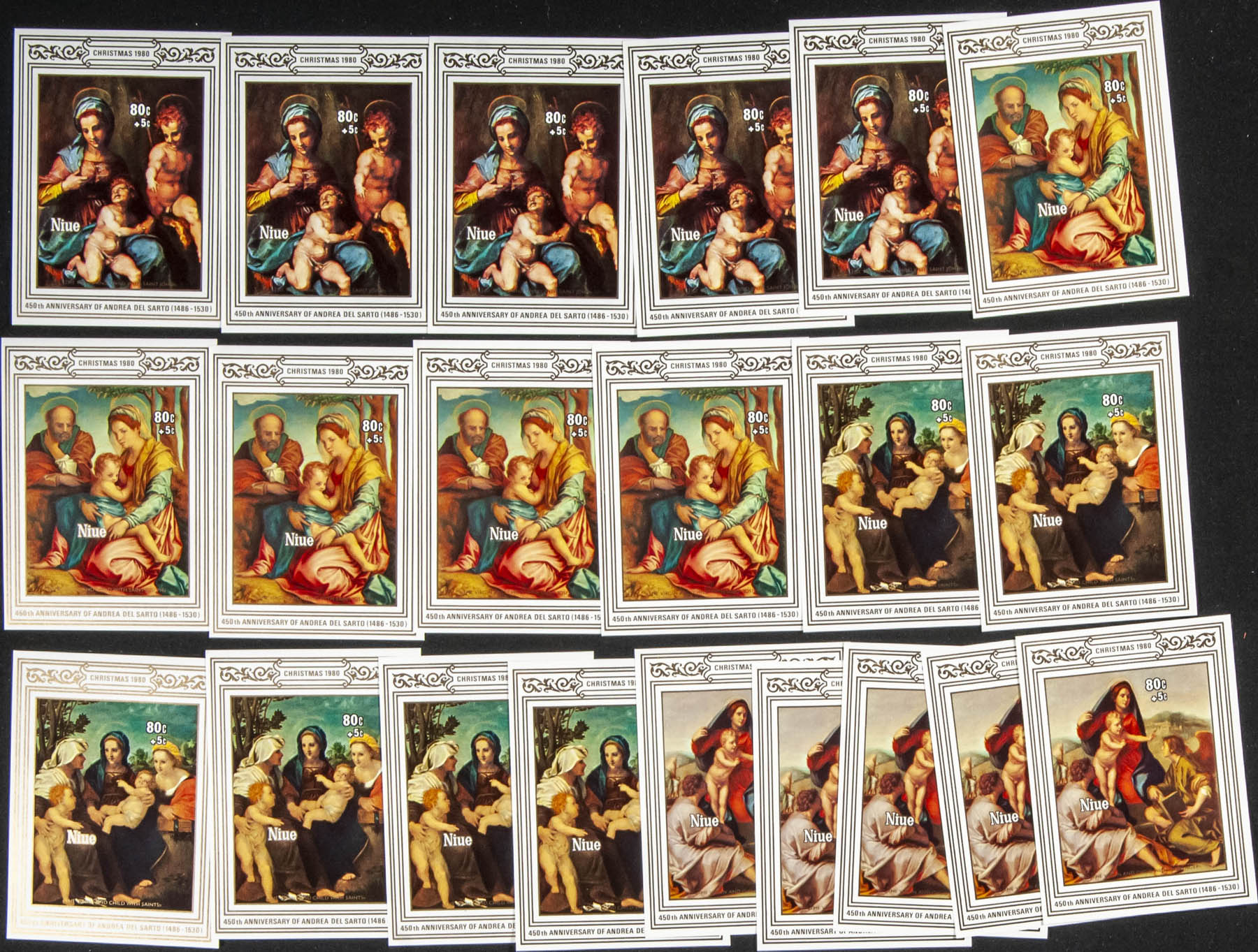 ★★Yvert . 1985. Christmas. Souvenir sheet. Group of IMPERFORATED sheets. (Michel: B95/98)