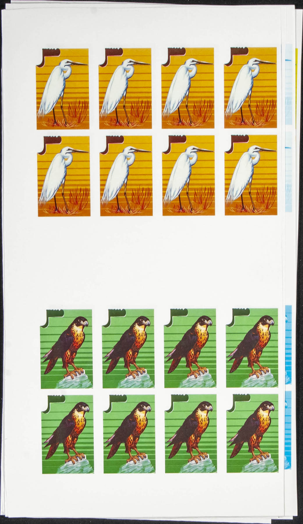 ★★Yvert 500/07. 1986. Stampex, birds. Progressive plate proofs of the set.
