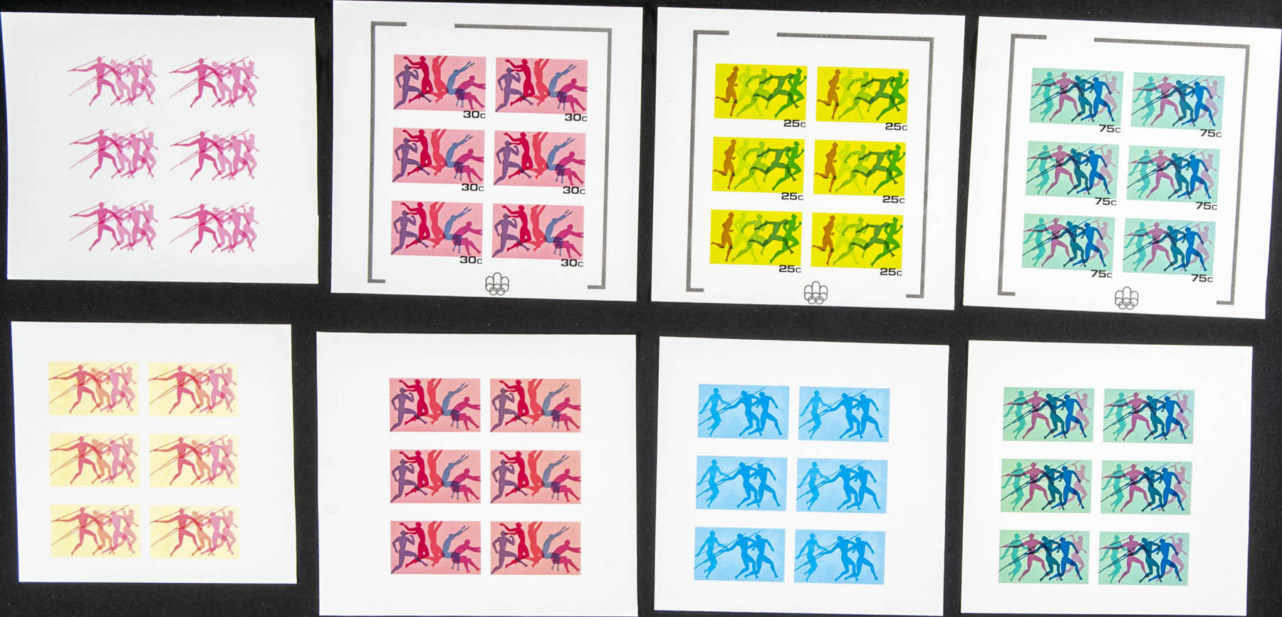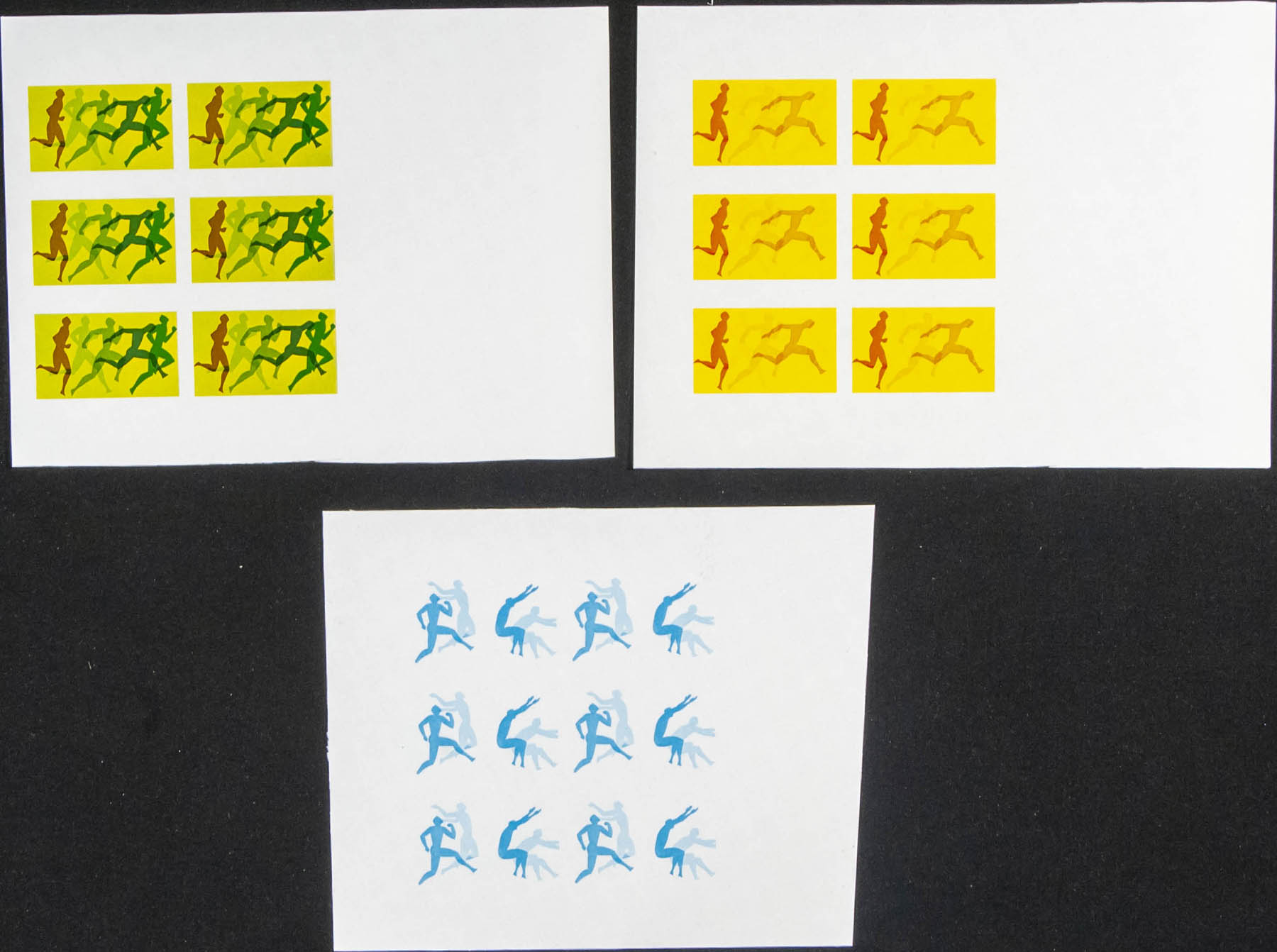 ★★Yvert 77/79. 1976. Olympic Games Montreal. Progressive plate proofs of the set.