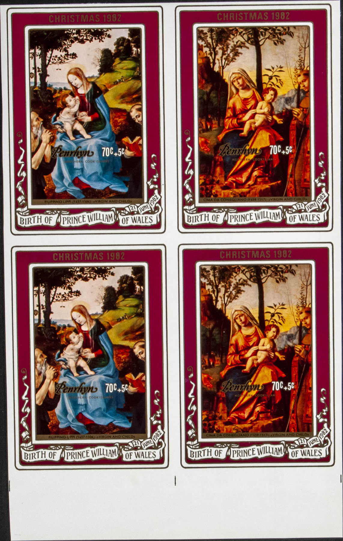 ★★Yvert B42/44. 1982. Christmas. Souvenir sheet. Group of IMPERFORATED sheets.