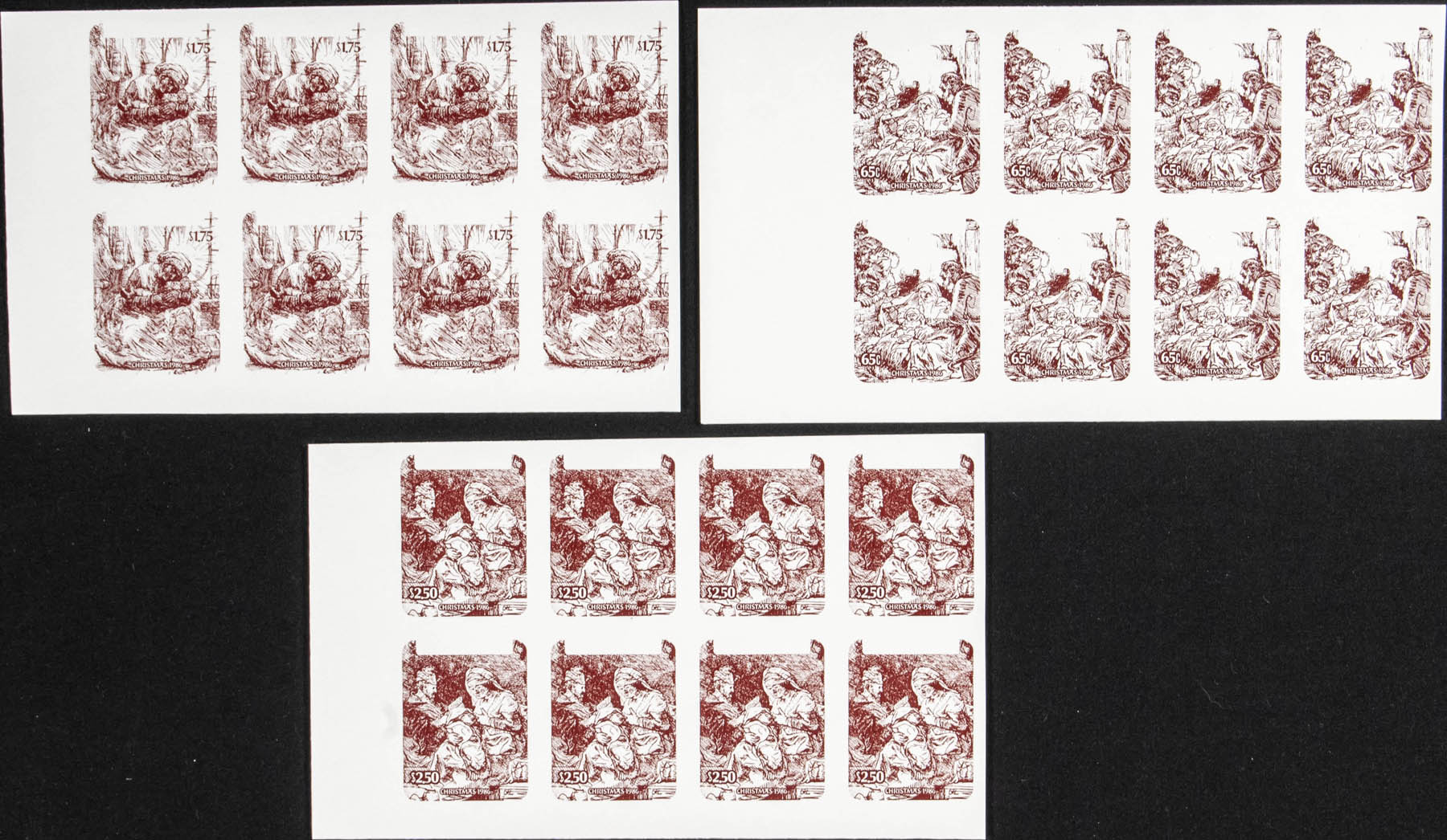 ★★Yvert 330/32. 1986. Christmas. Progressive plate proofs of the set.