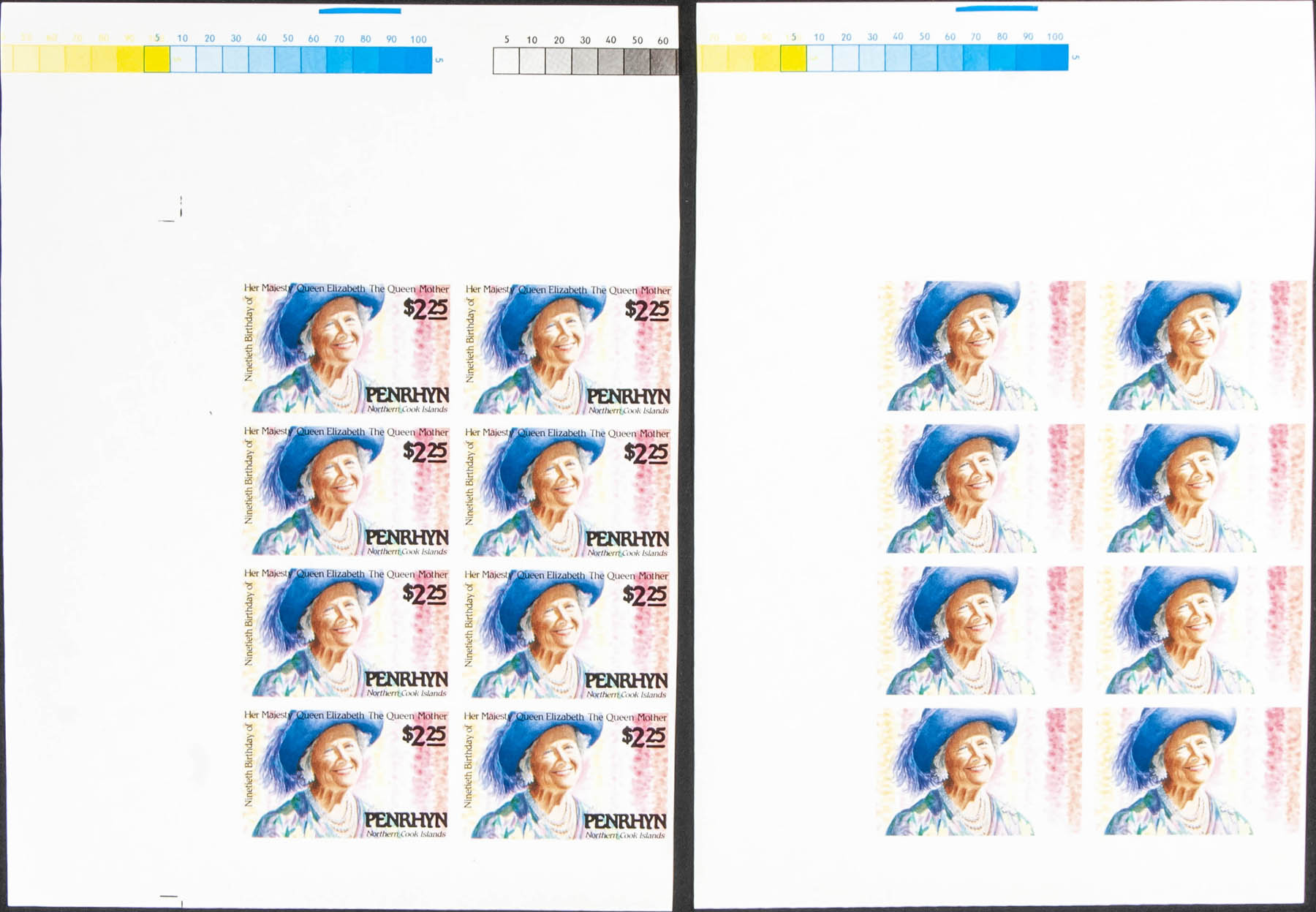★★Yvert 362. 1990. Queen mother. Progressive plate proofs of the set.