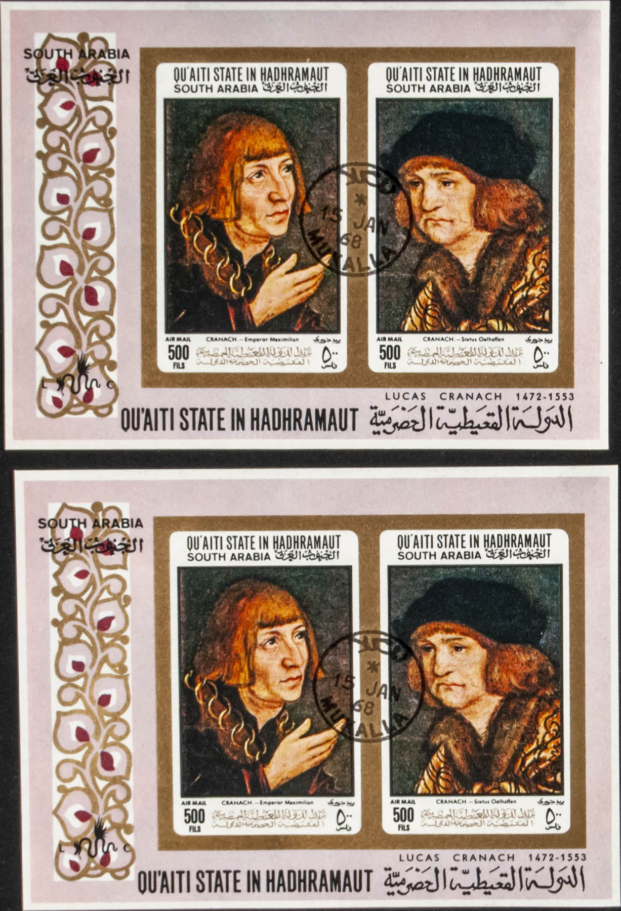 Yvert B17. 1966. Cranach paintings. Souvenir sheet. Group of IMPERFORATED sheets. Cancelled to order.