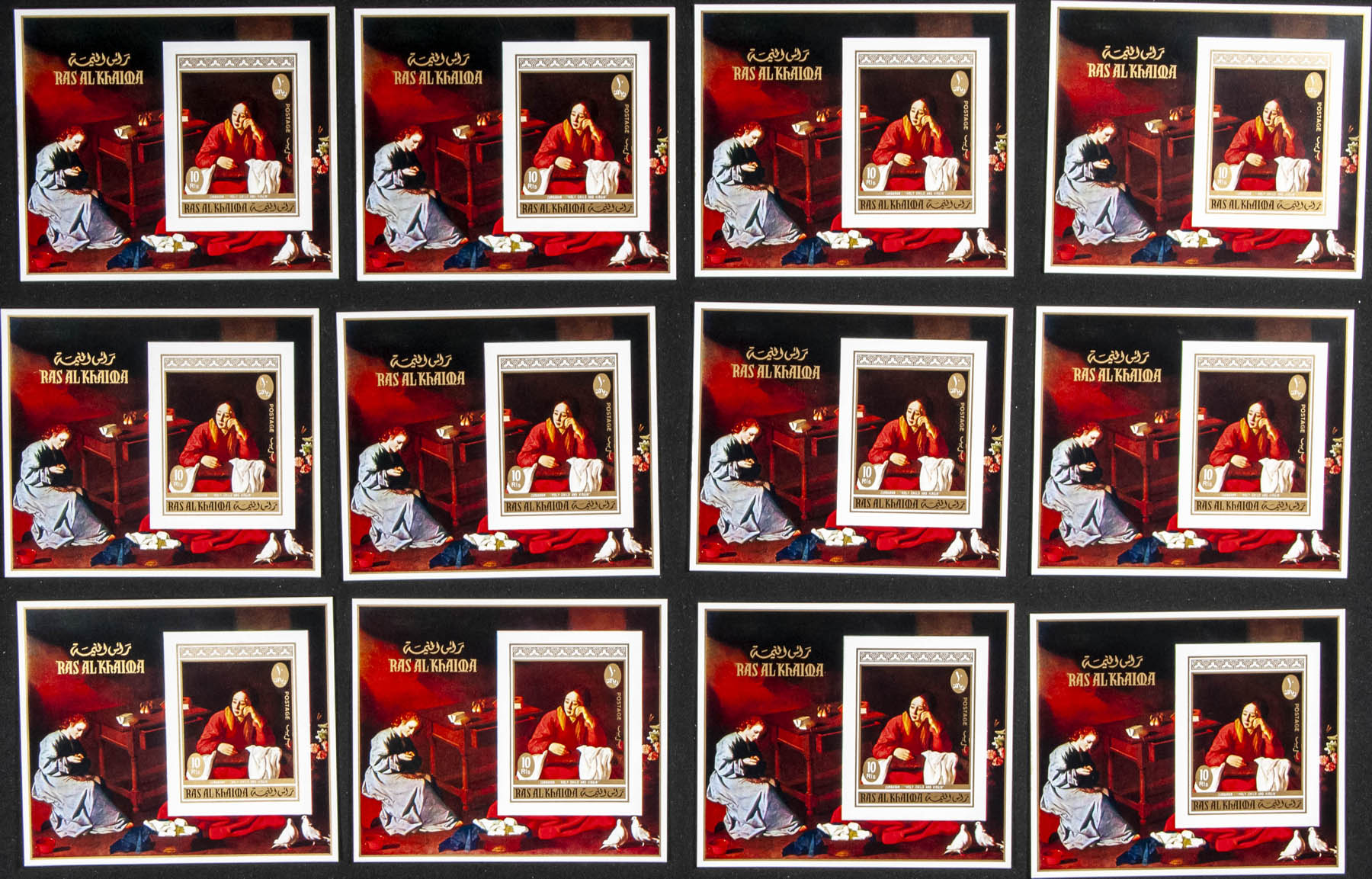 ★★ . 1970. The life of the Blessed Virgin Mary, Zurbaran. Souvenir sheet. Group of IMPERFORATED sheets. (Michel: BAD95A)
