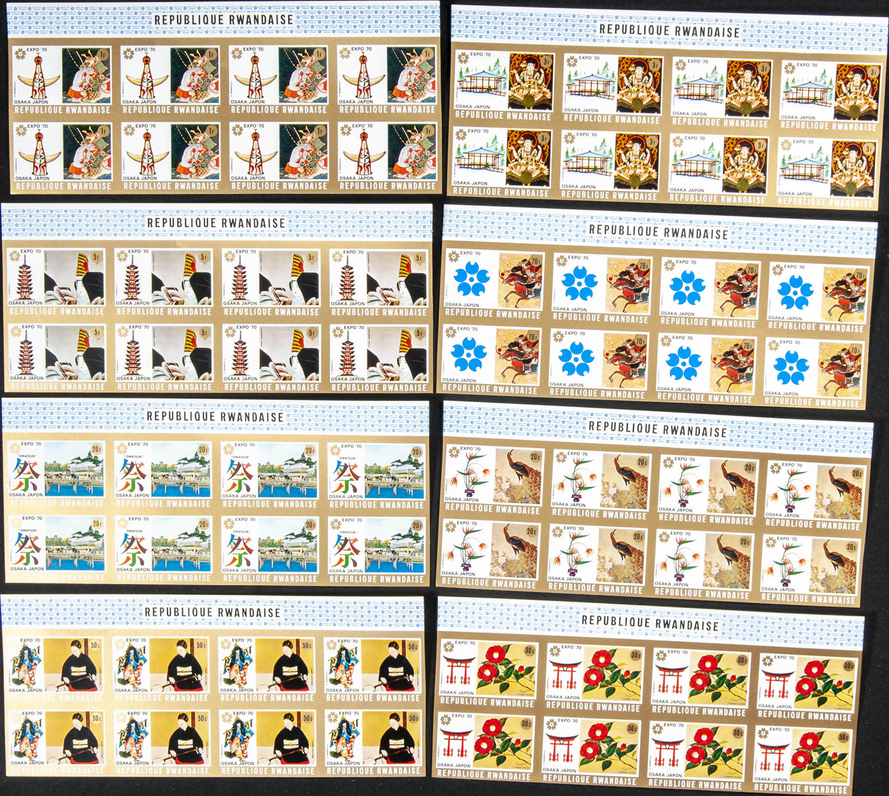 ★★Yvert 362/69. 1970. Expo Osaka. Group of complete IMPERFORATED set.