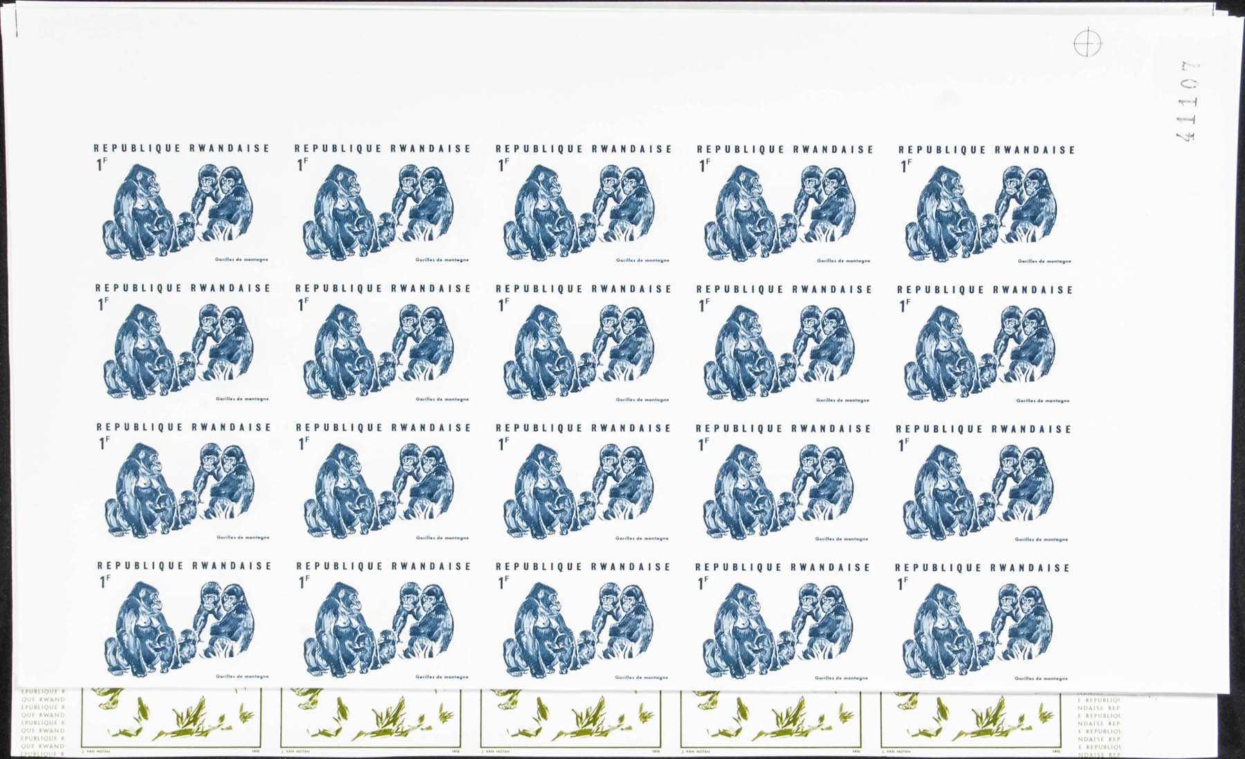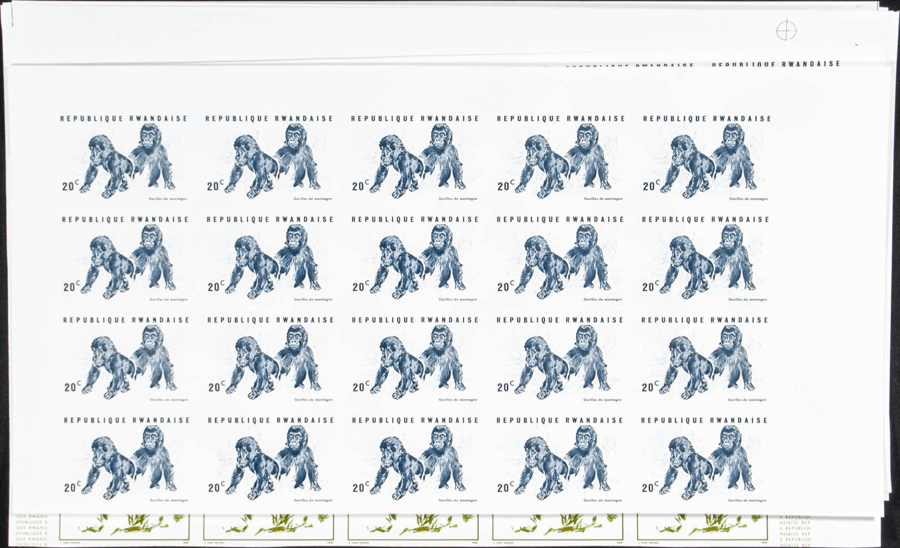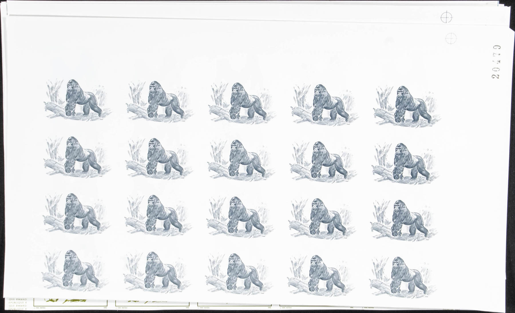 ★★Yvert 370/77. 1970. Gorillas. Group of progressive plate proofs of the set.