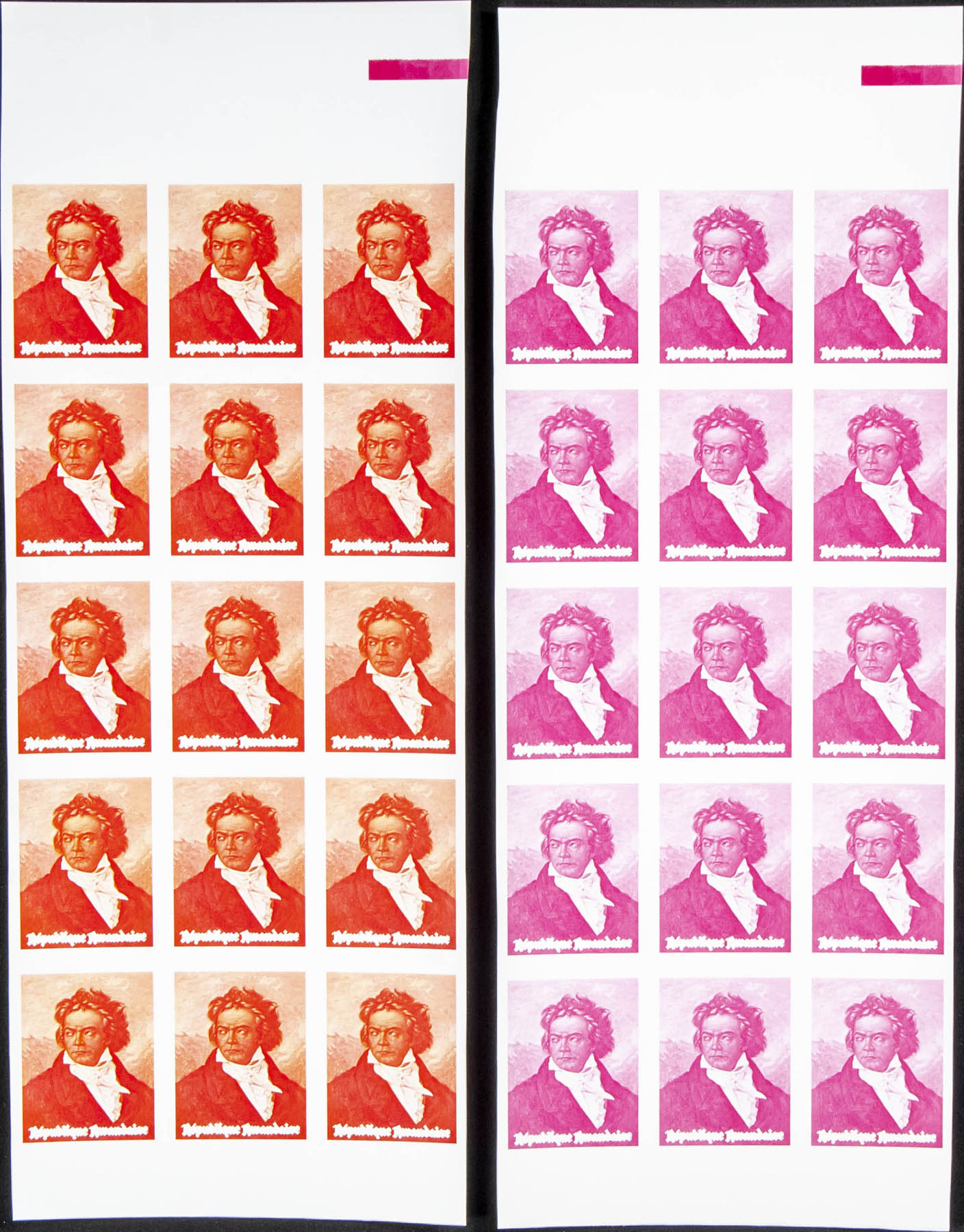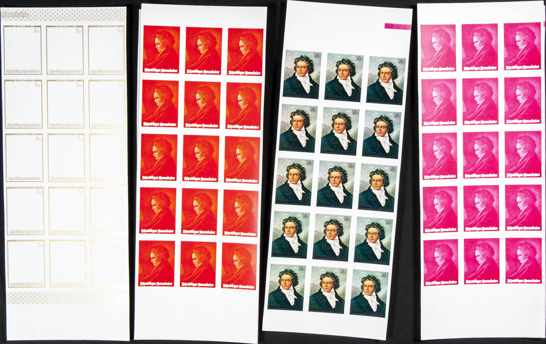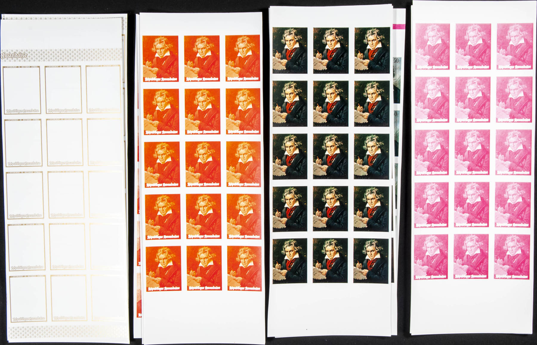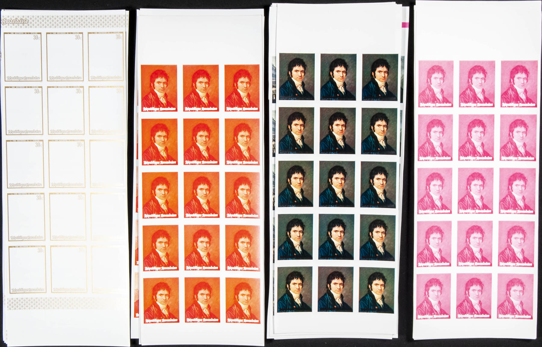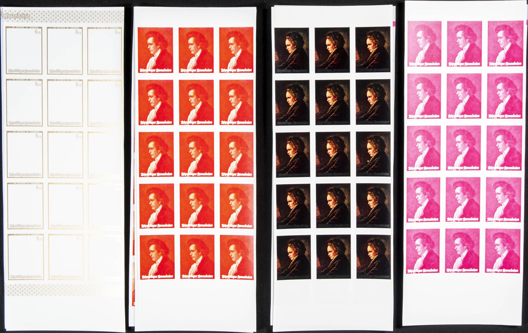 ★★Yvert 416/21. 1971. Beethoven. Group of progressive plate proofs of the set.