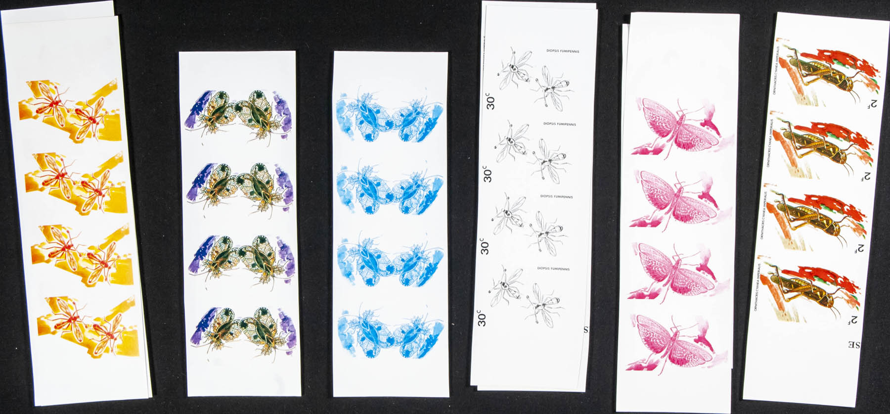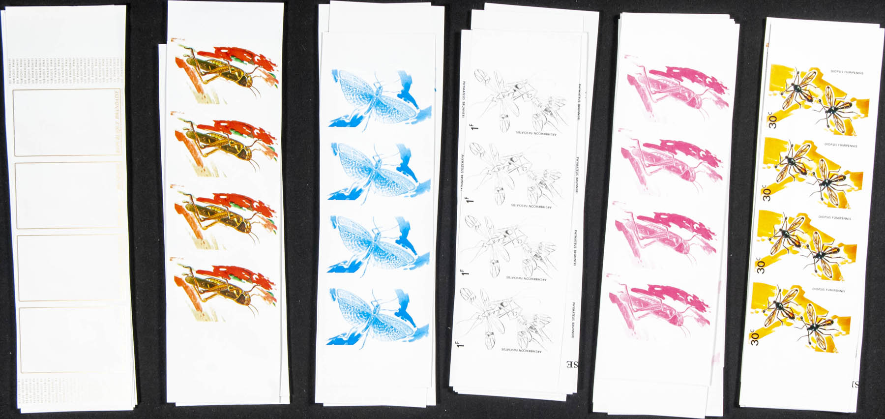 ★★Yvert 501/10. 1973. Insects. Group of progressive plate proofs of the set.