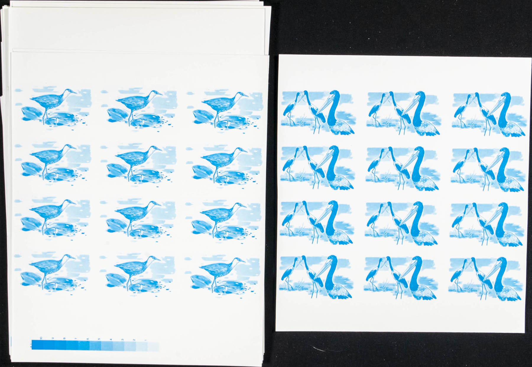 ★★Yvert 635/42. 1975. Water birds. Group of progressive plate proofs of the set.