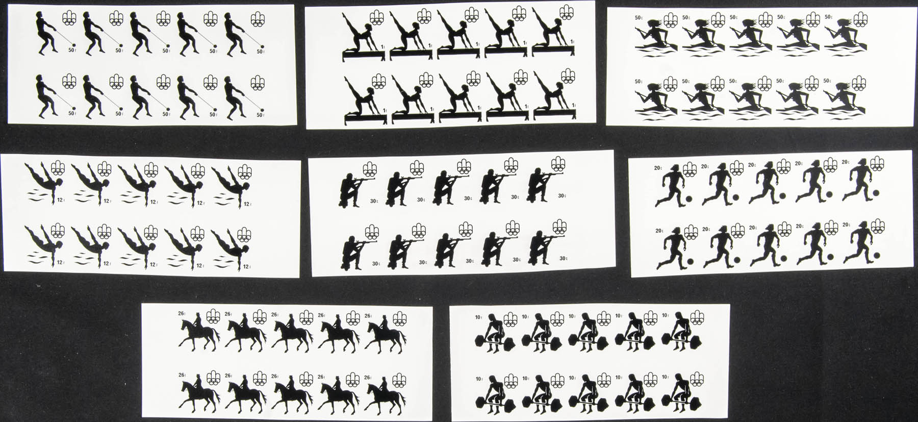★★Yvert 737/44. 1976. Olympic Games Montreal. Group of progressive plate proofs of the set.