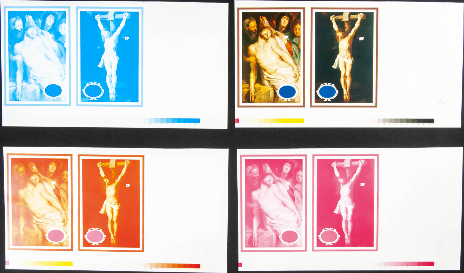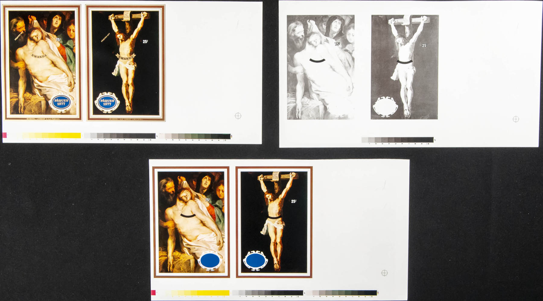 ★★Yvert B71/72. 1977. Easter. Souvenir sheet. Group of progressive plate proof of the sheet.