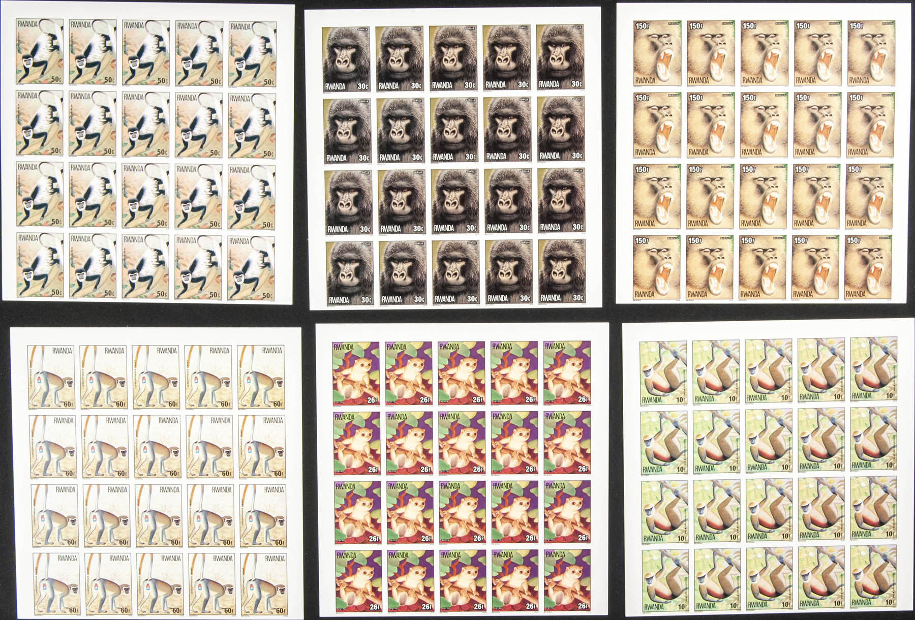 ★★Yvert 820/27. 1978. Monkeys. Group of complete IMPERFORATED set.