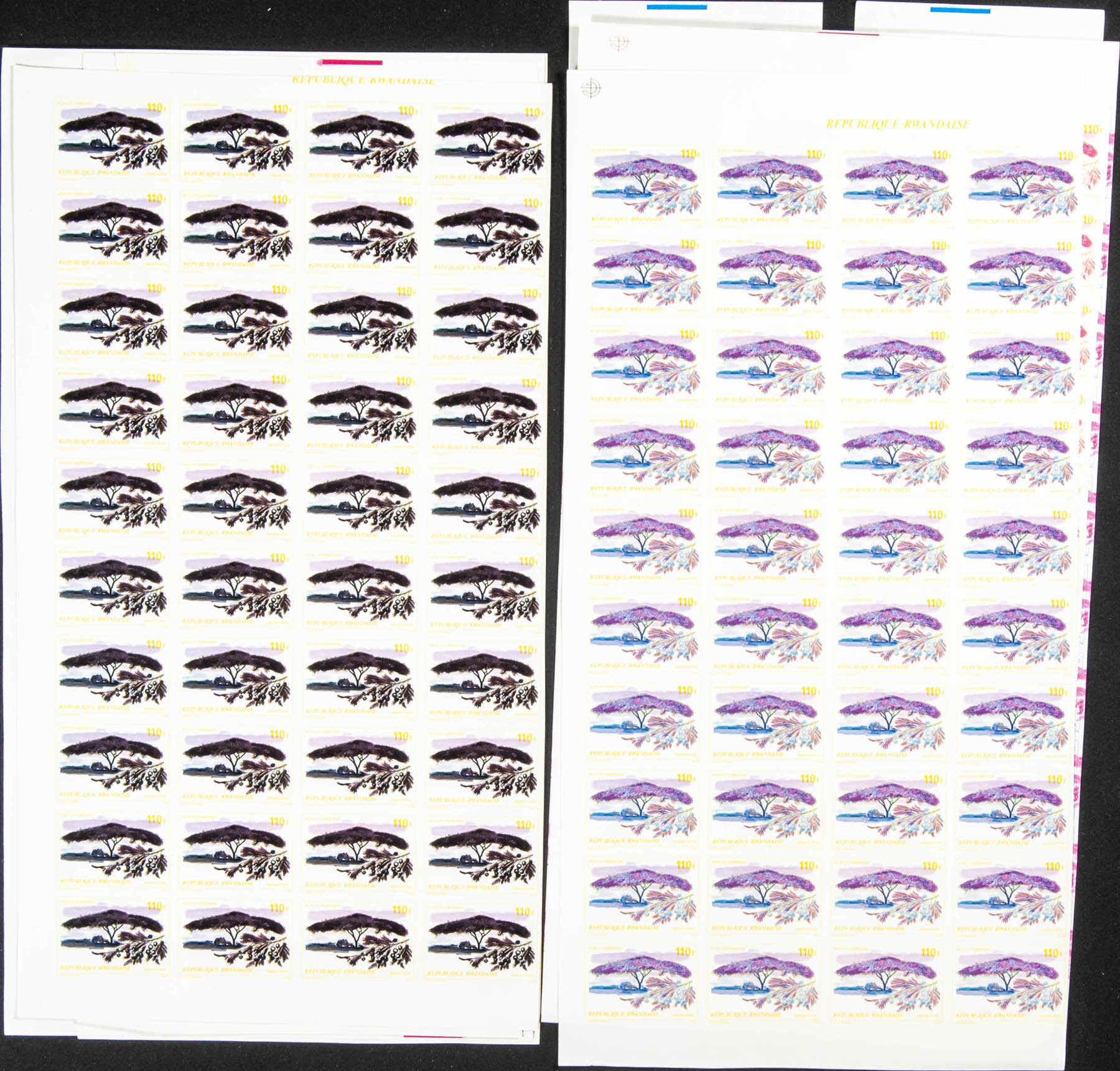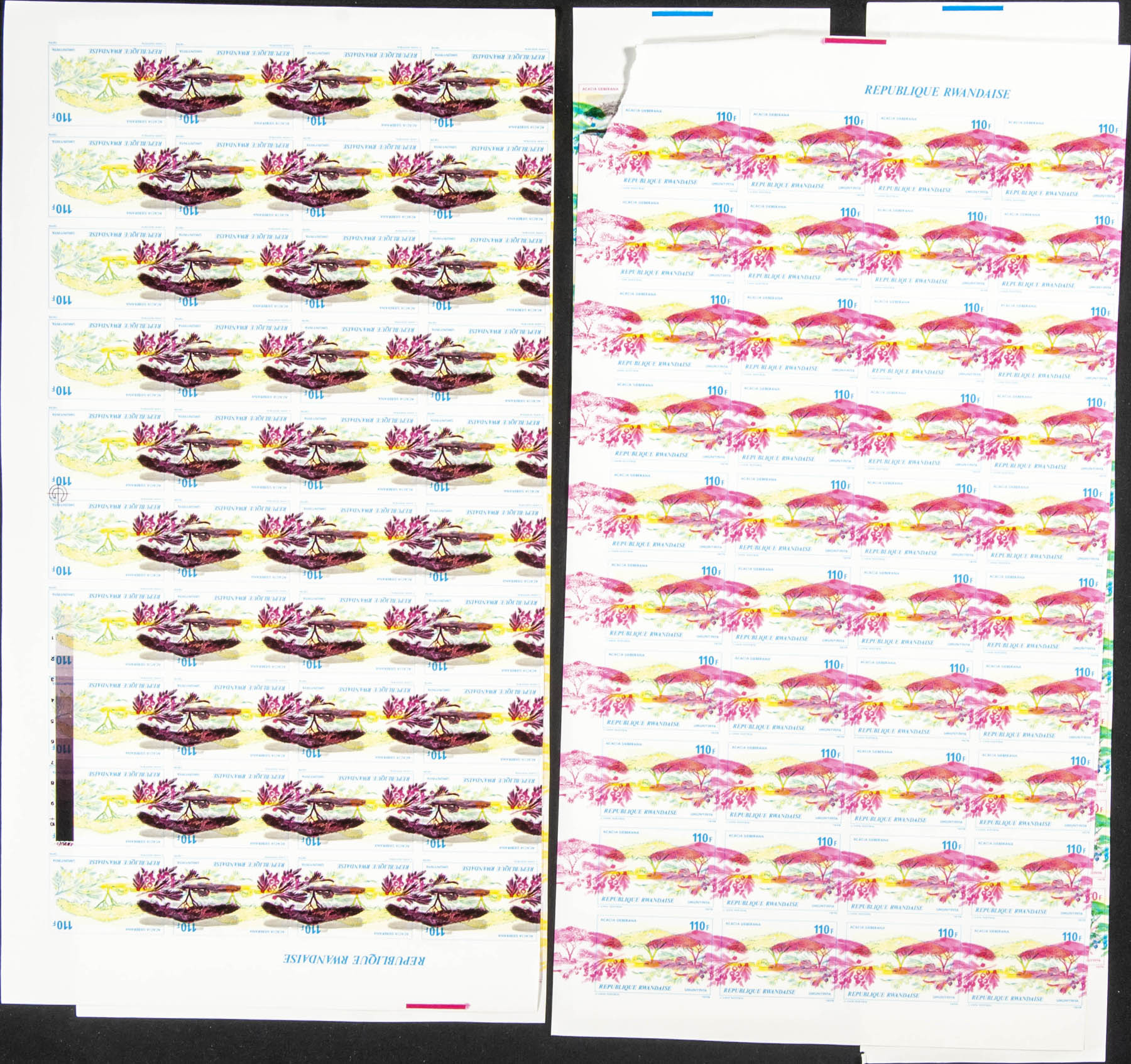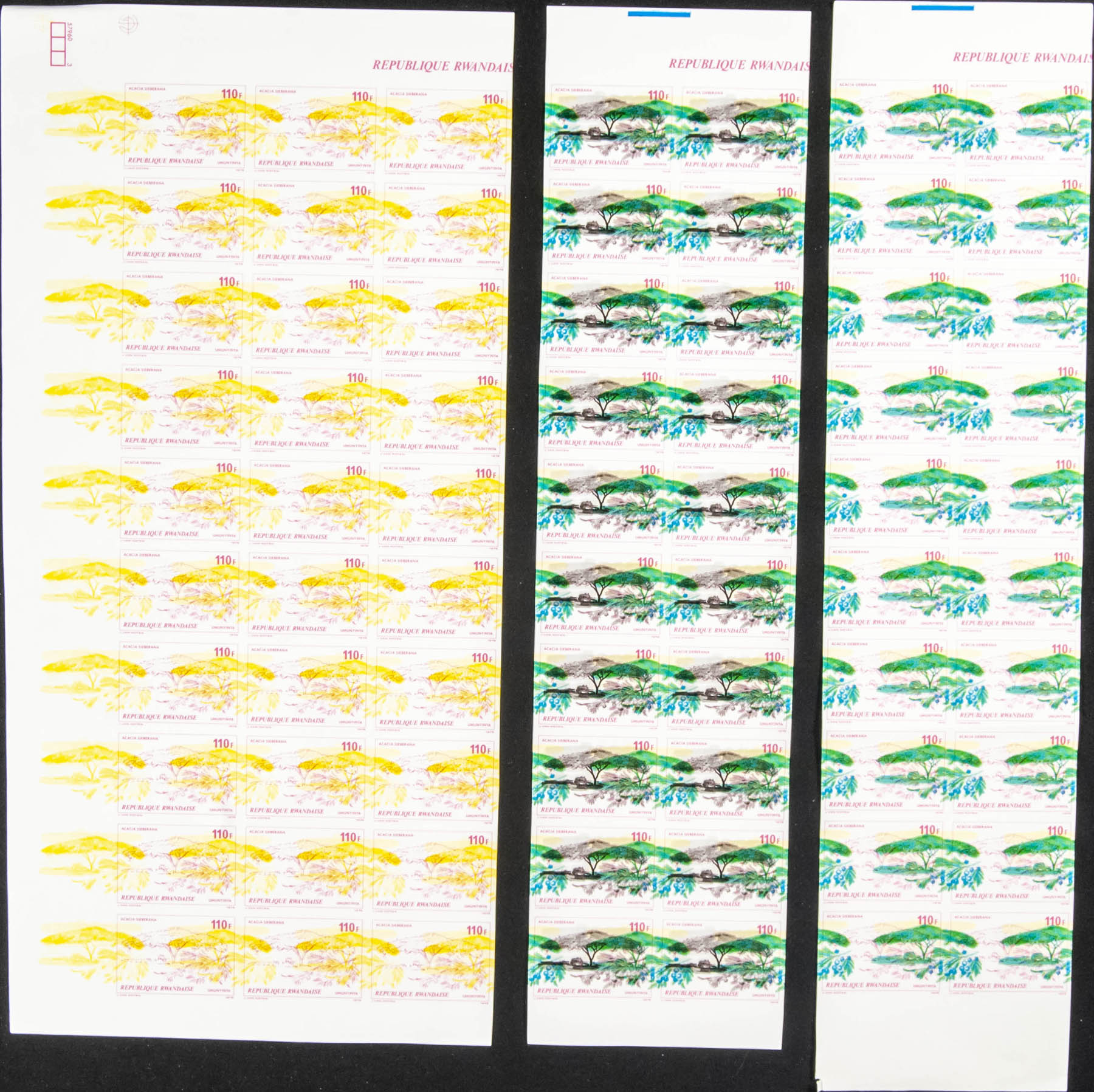 ★★Yvert 878/85. 1979. African trees and shrubs. Group of progressive plate proofs of the set.