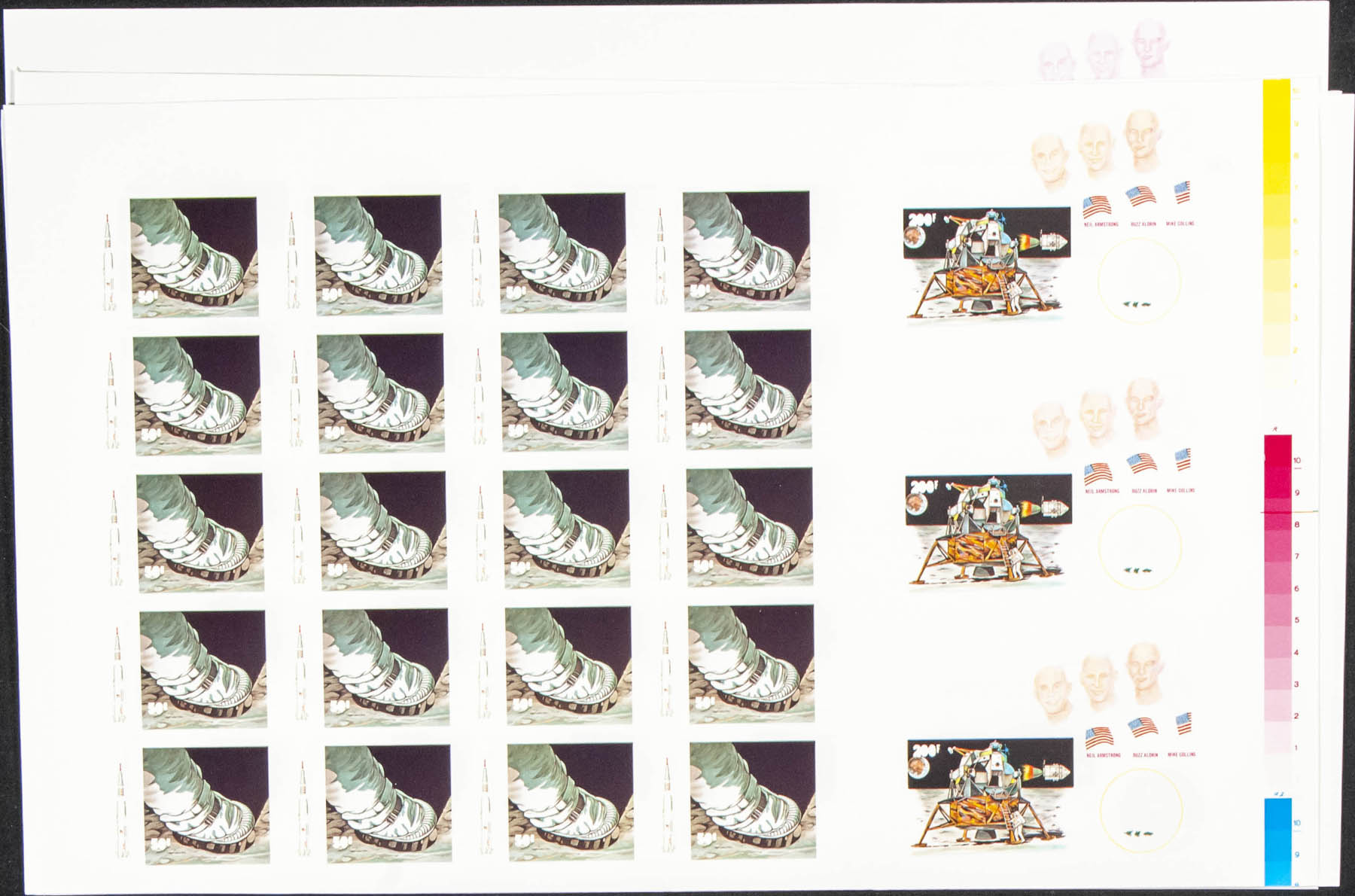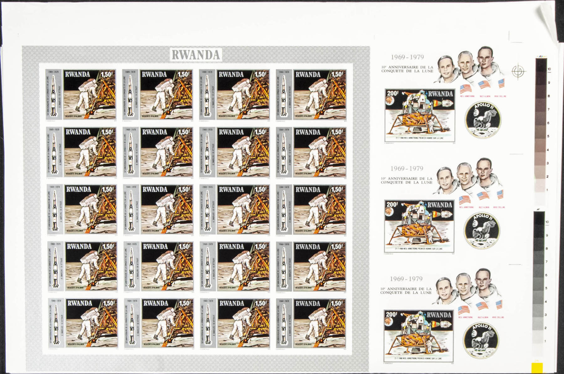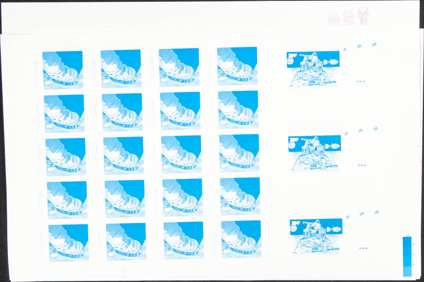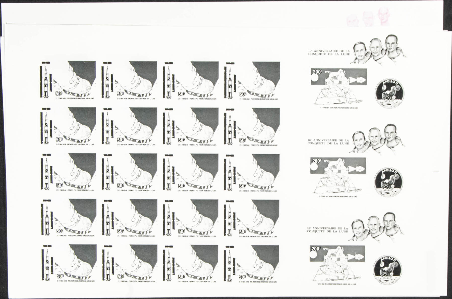 ★★Yvert 919/25, B85. 1980. Moonlanding. Group of progressive plate proofs of the set.