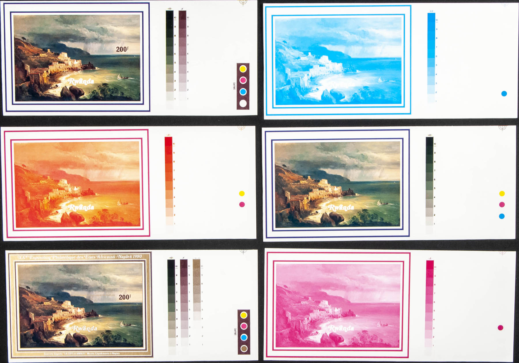 ★★Yvert B86. 1980. Napels expo. Souvenir sheet. Group of progressive plate proof of the sheet.