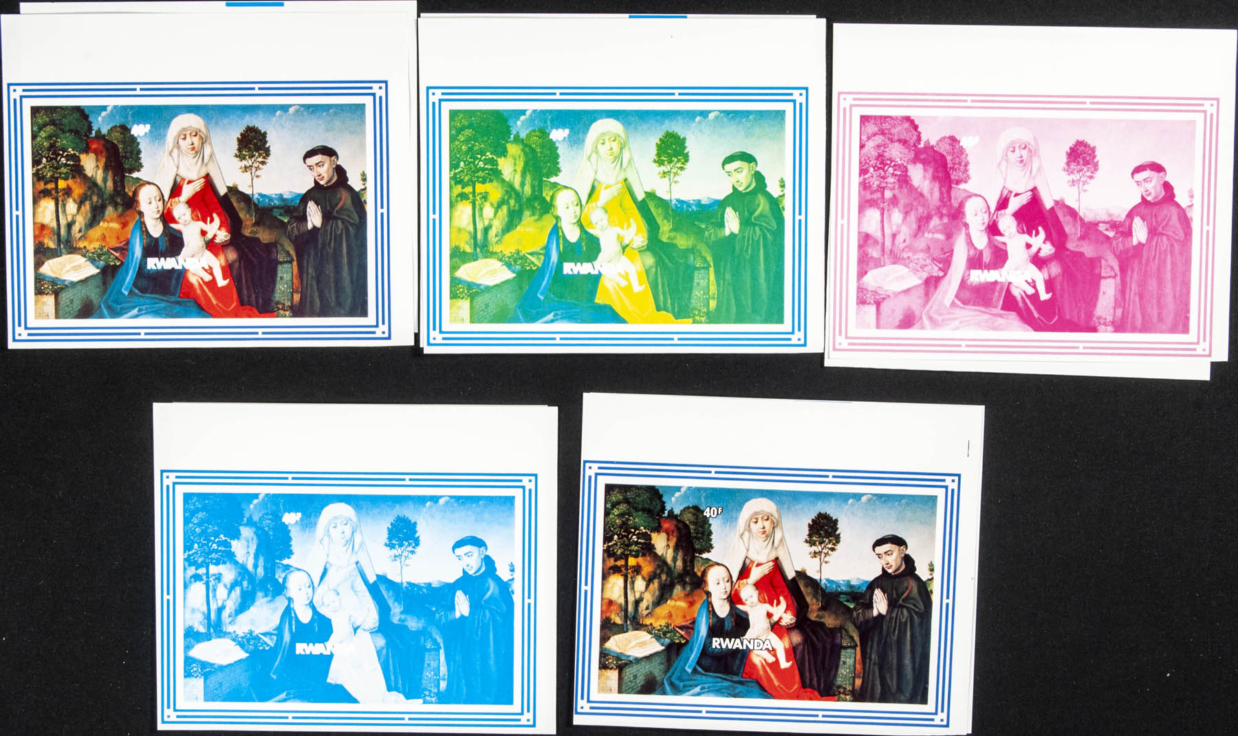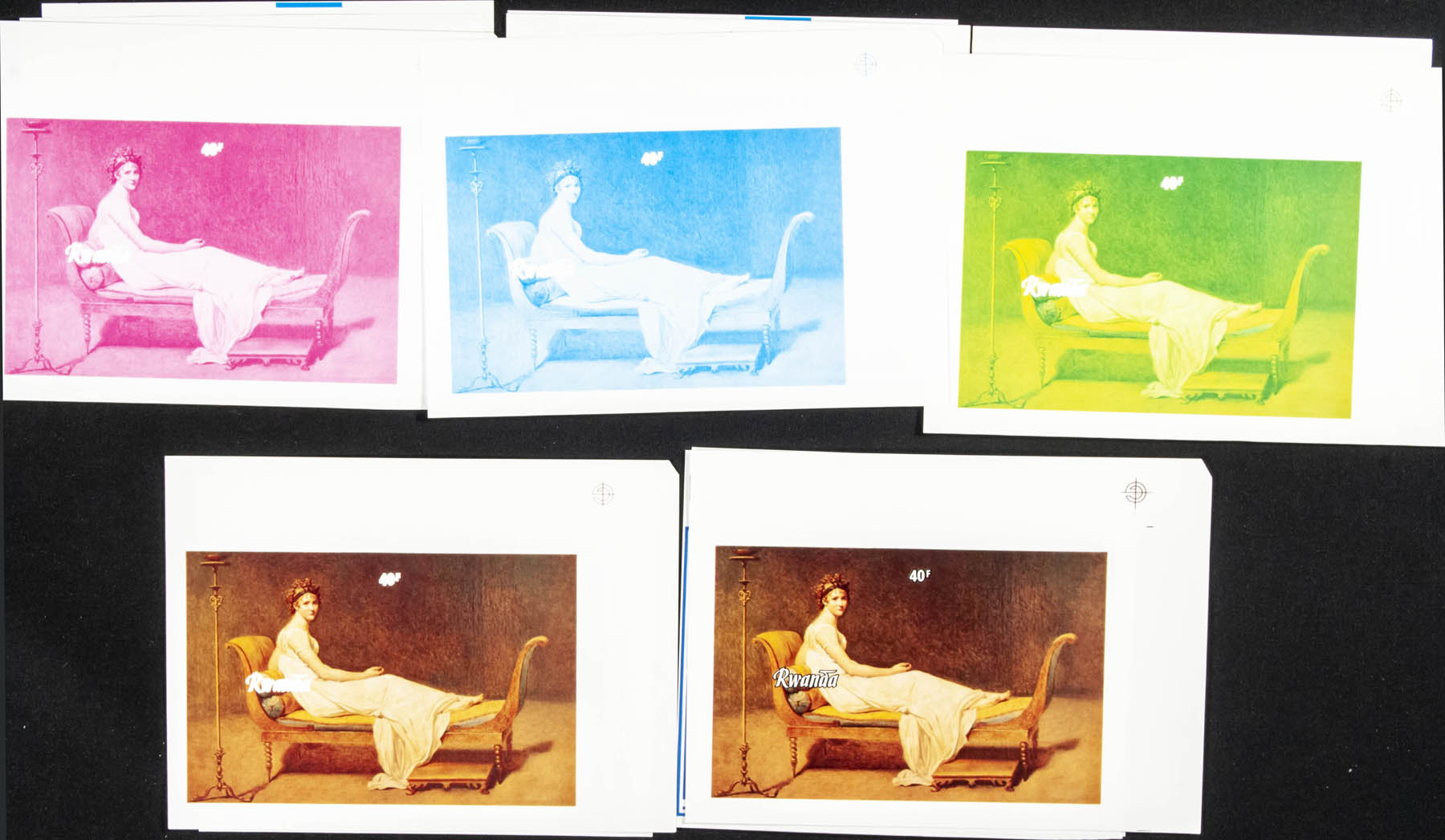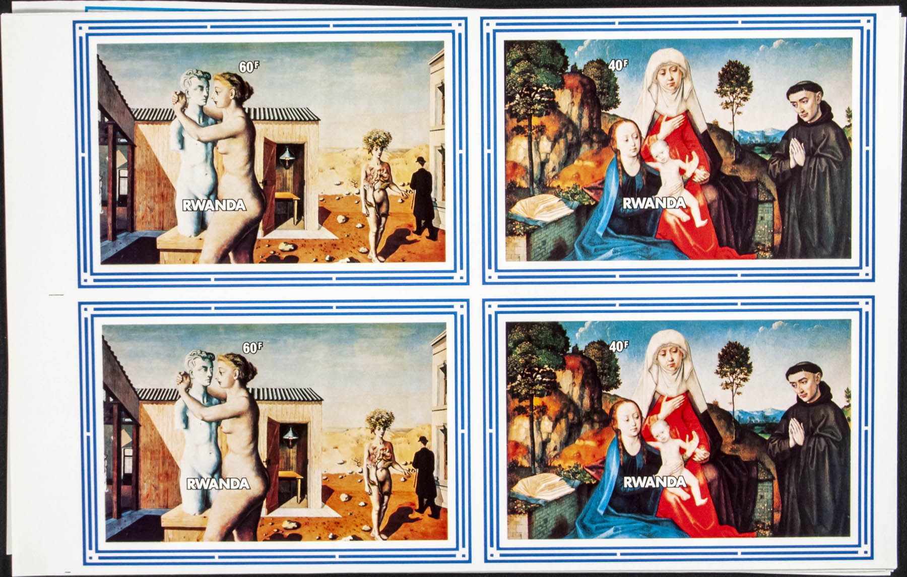 ★★Yvert B93/96. 1982. Belgium, Philexfrance, paintings. Souvenir sheet. Group of progressive plate proof of the sheet.