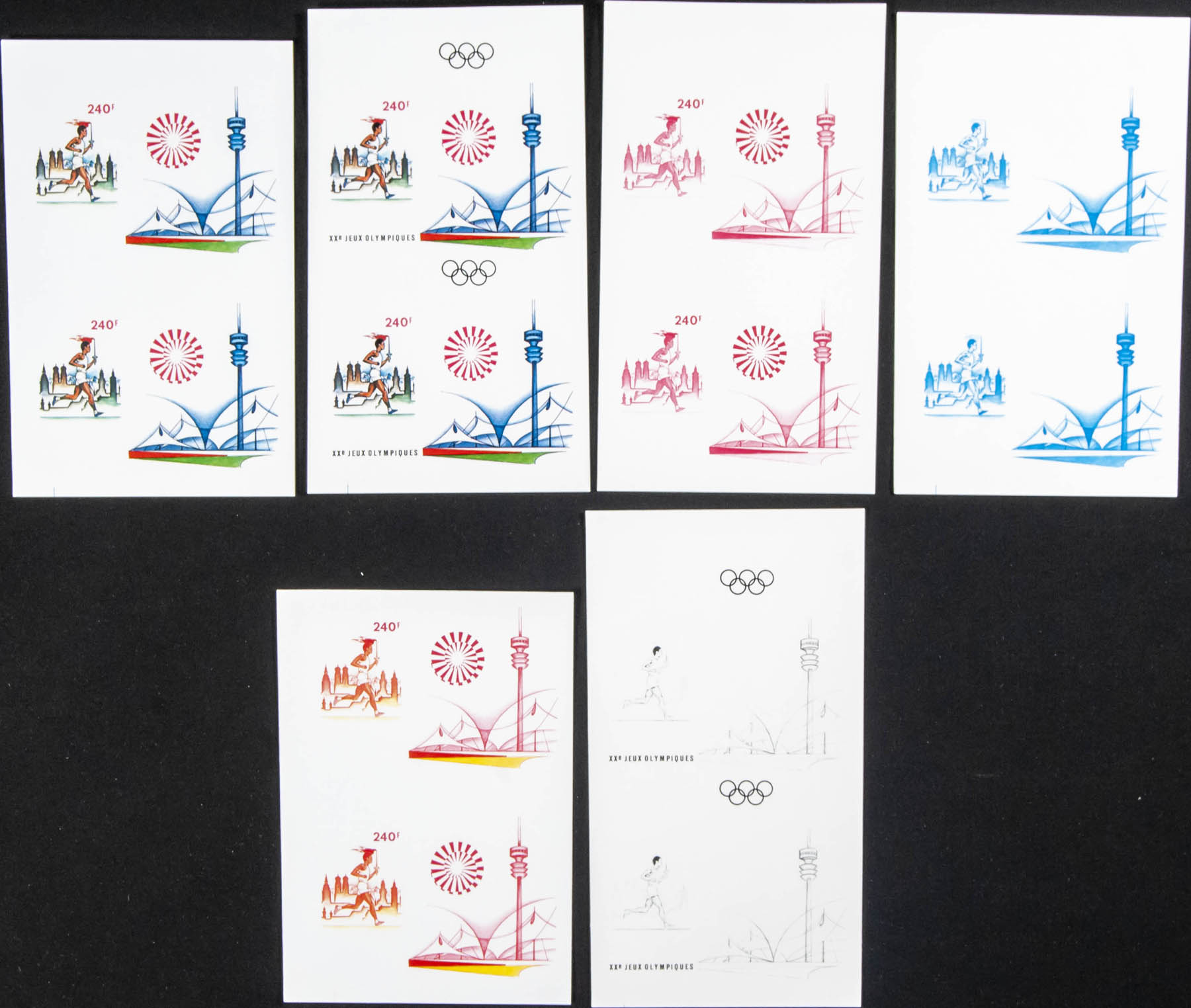 ★★Yvert B10. 1972. Olympic Games Munich. Souvenir sheet. Group of progressive plate proof of the sheet.