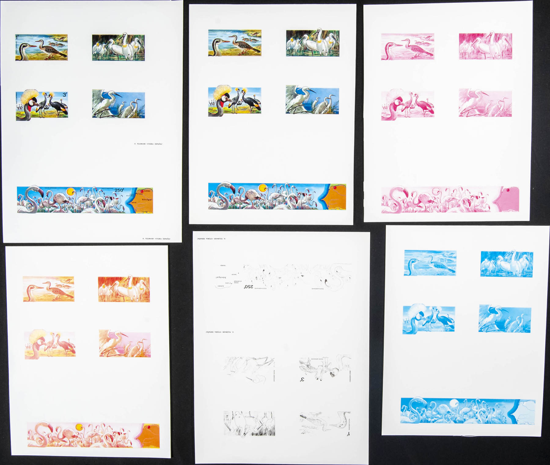 ★★Yvert A134/39. 1974. Birds. Group of progressive plate proofs of the set, of mini sheets.