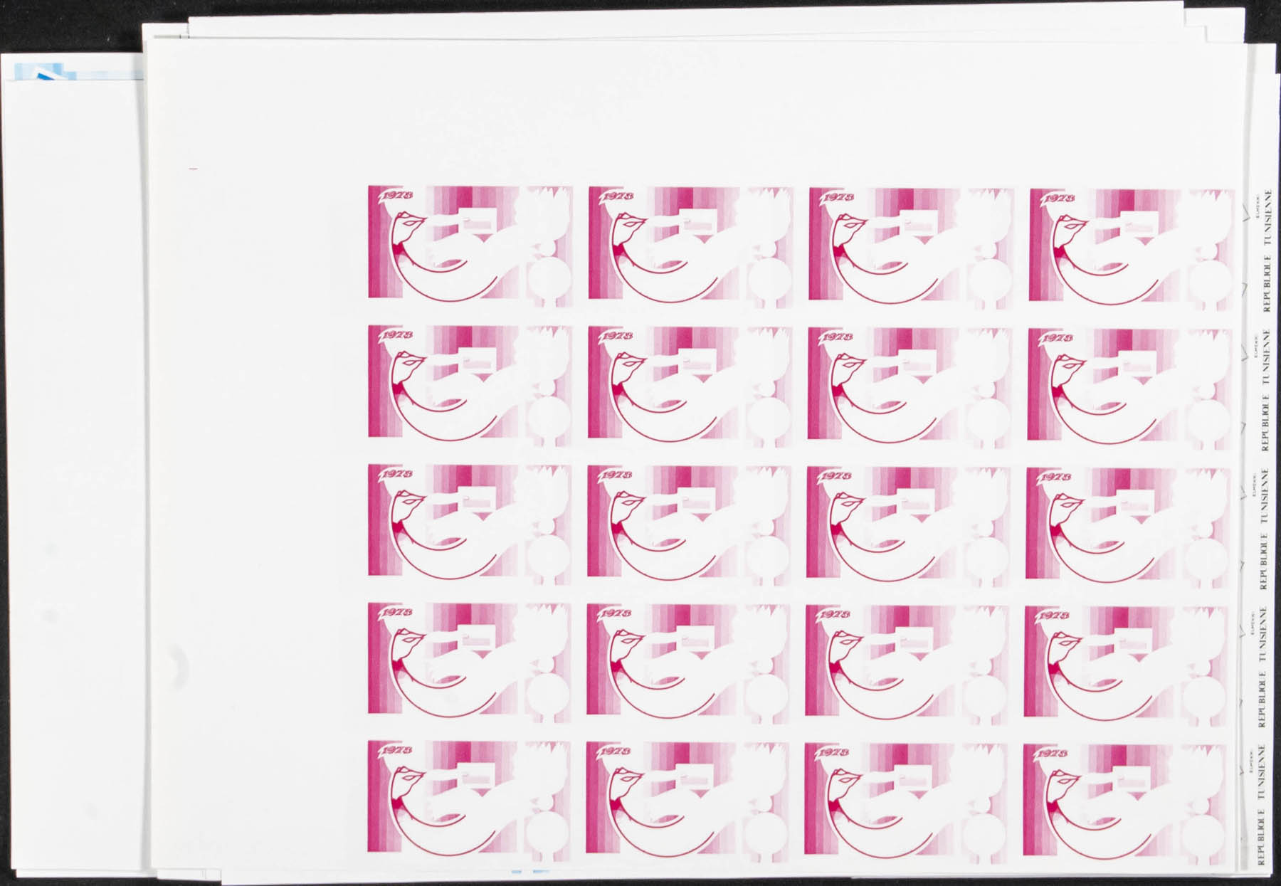 ★★Yvert 759/60. 1973. Stamp Day. Group of progressive plate proofs of the set.