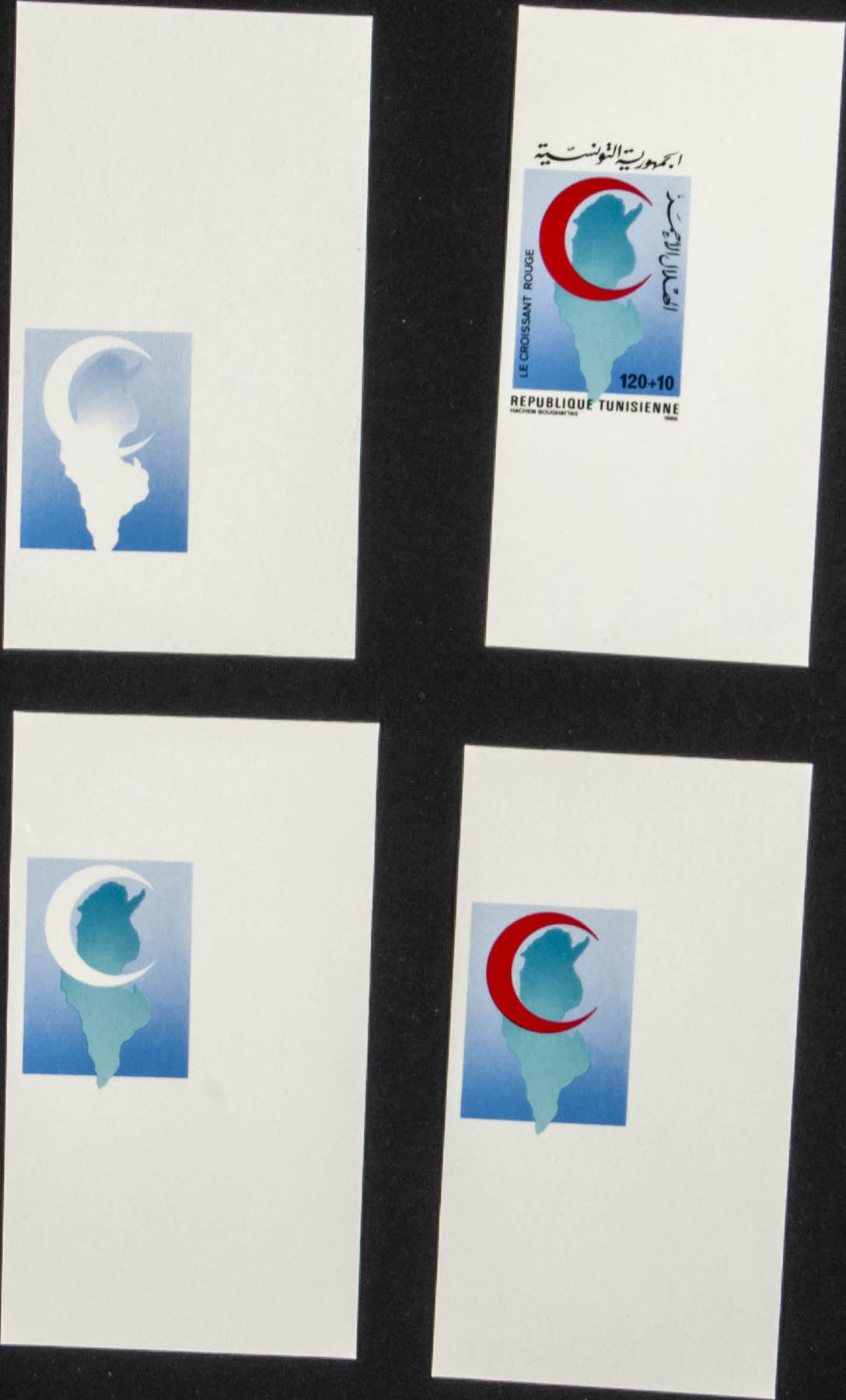★★Yvert 1054. 1986. Red Cross. Group of progressive plate proofs of the set.