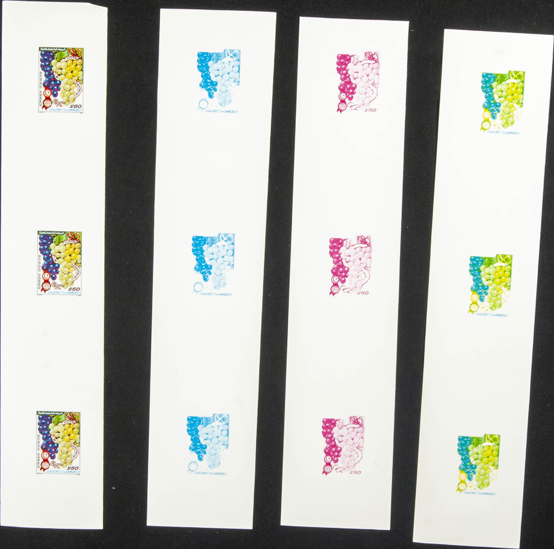 ★★Yvert 1090. 1987. International wine year. Group of progressive plate proofs of the set.