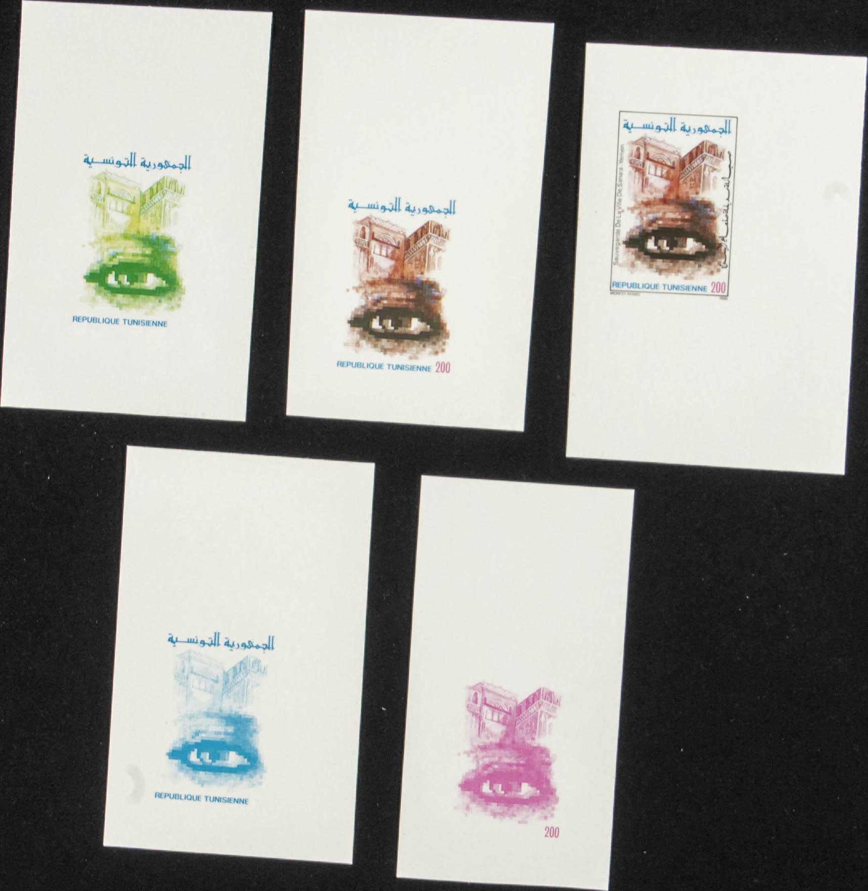 ★★Yvert 1113. 1988. Sanaa. Group of progressive plate proofs of the set.