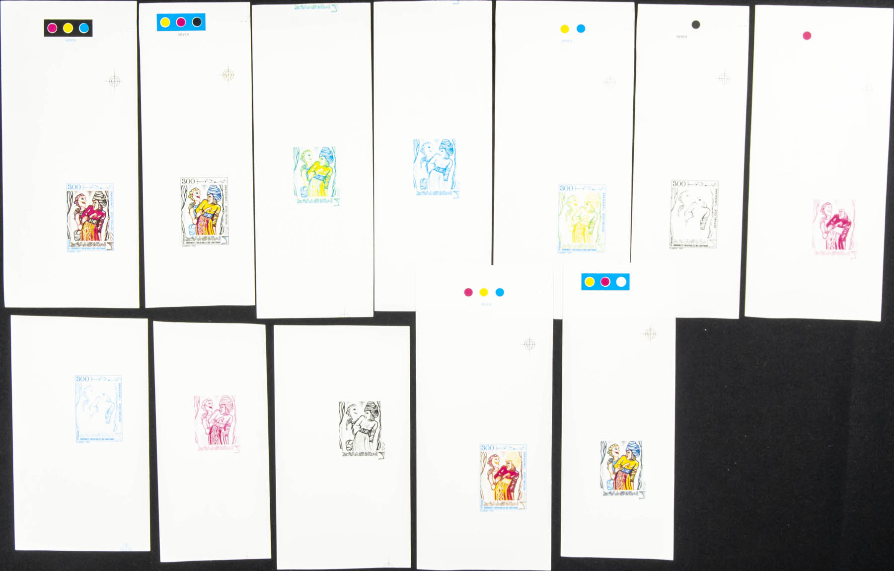 ★★Yvert 1136. 1989. Carthage theatrical Days. Group of progressive plate proofs of the set.