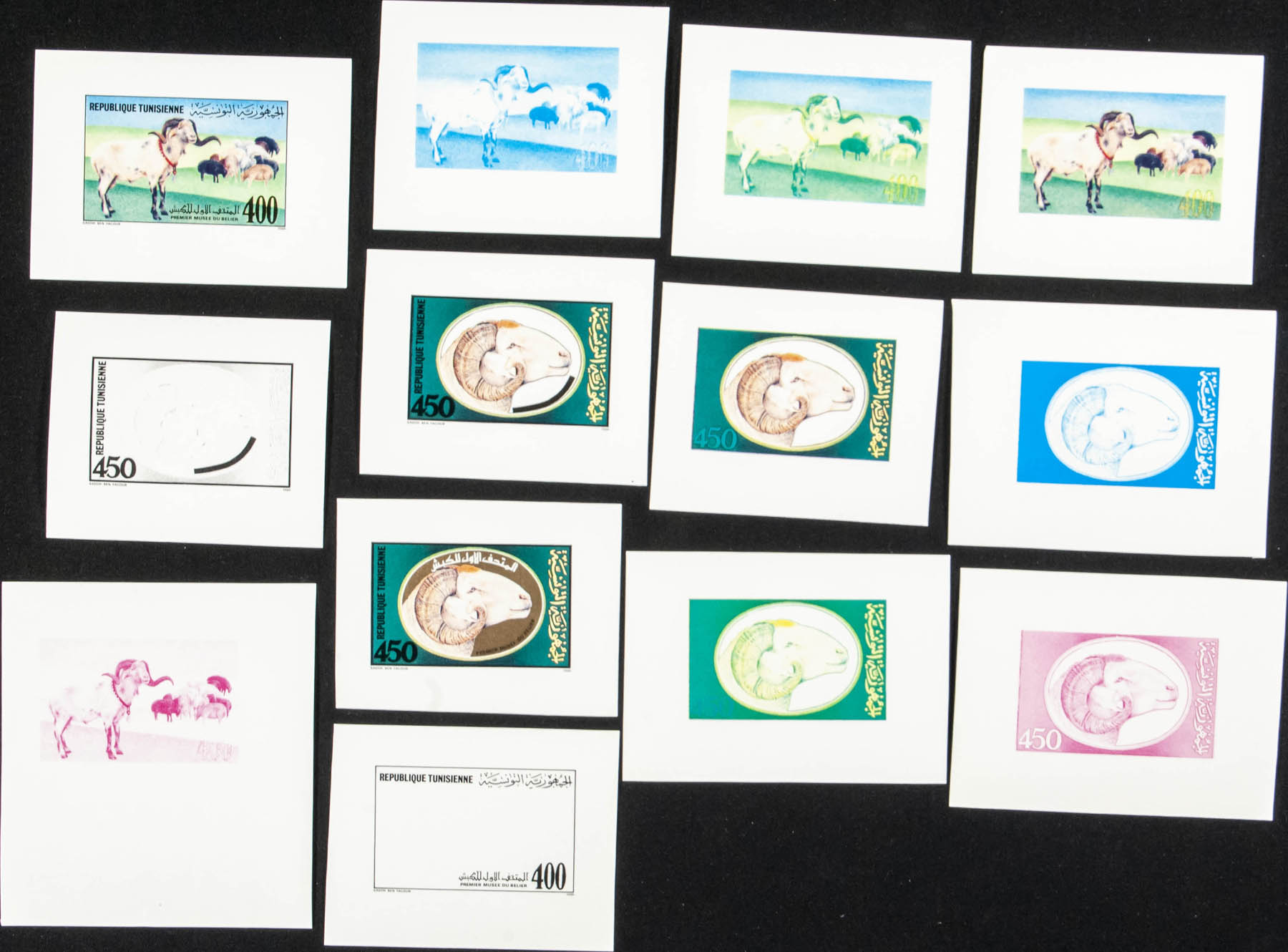 ★★Yvert 1143/44. 1990. Museum of Sheep Farming. Group of progressive plate proofs of the set.