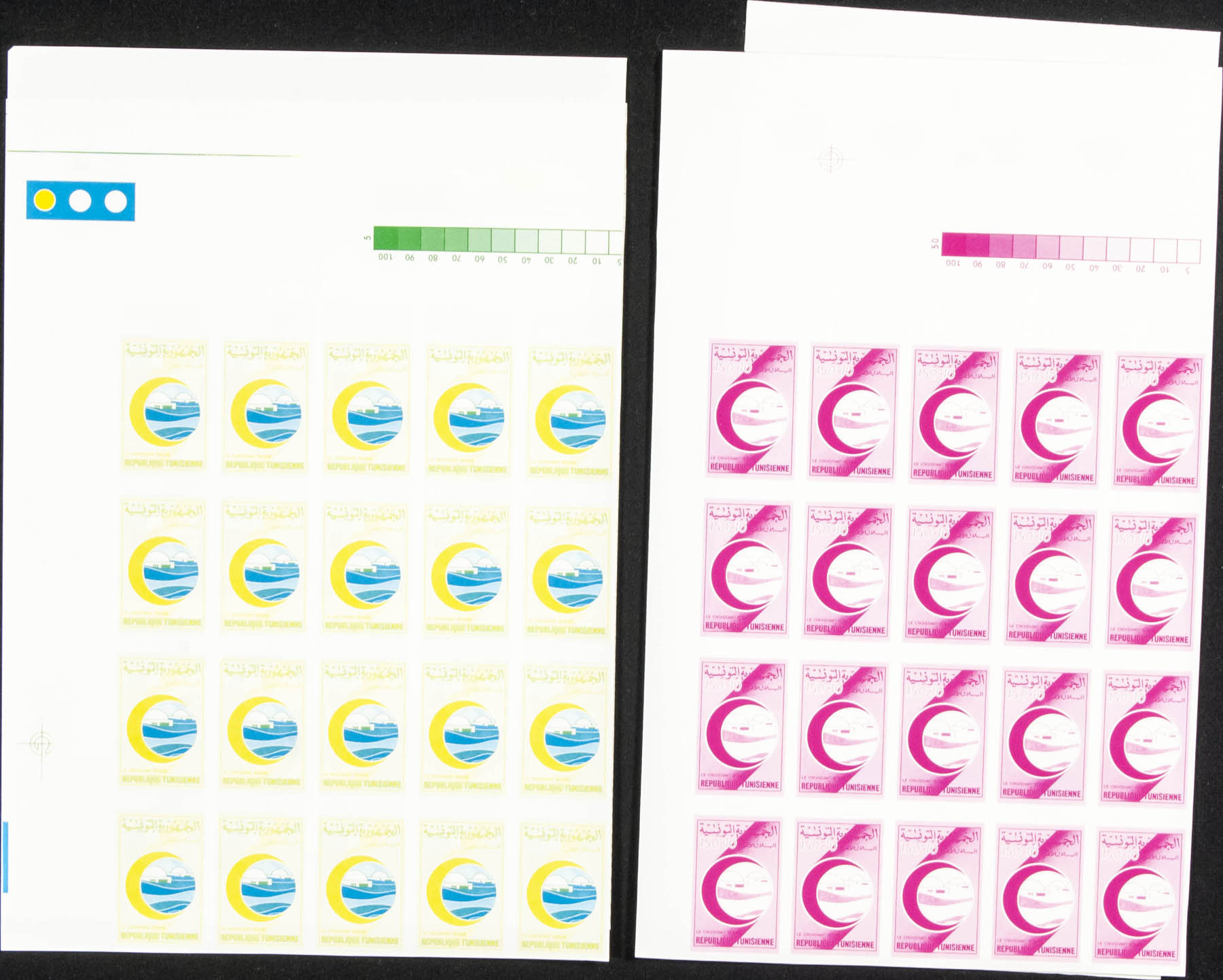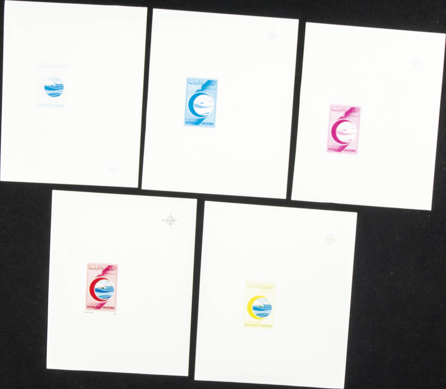 ★★Yvert 1145. 1990. Tunisian Red Crescent. Group of progressive plate proofs of the set.