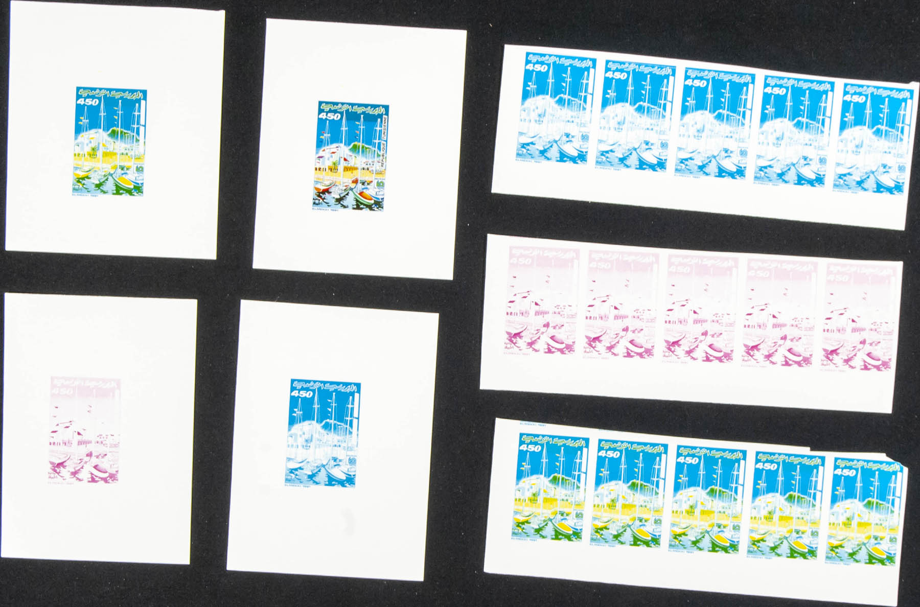 ★★Yvert 1161. 1991. Montazah Tabarka. Group of progressive plate proofs of the set.